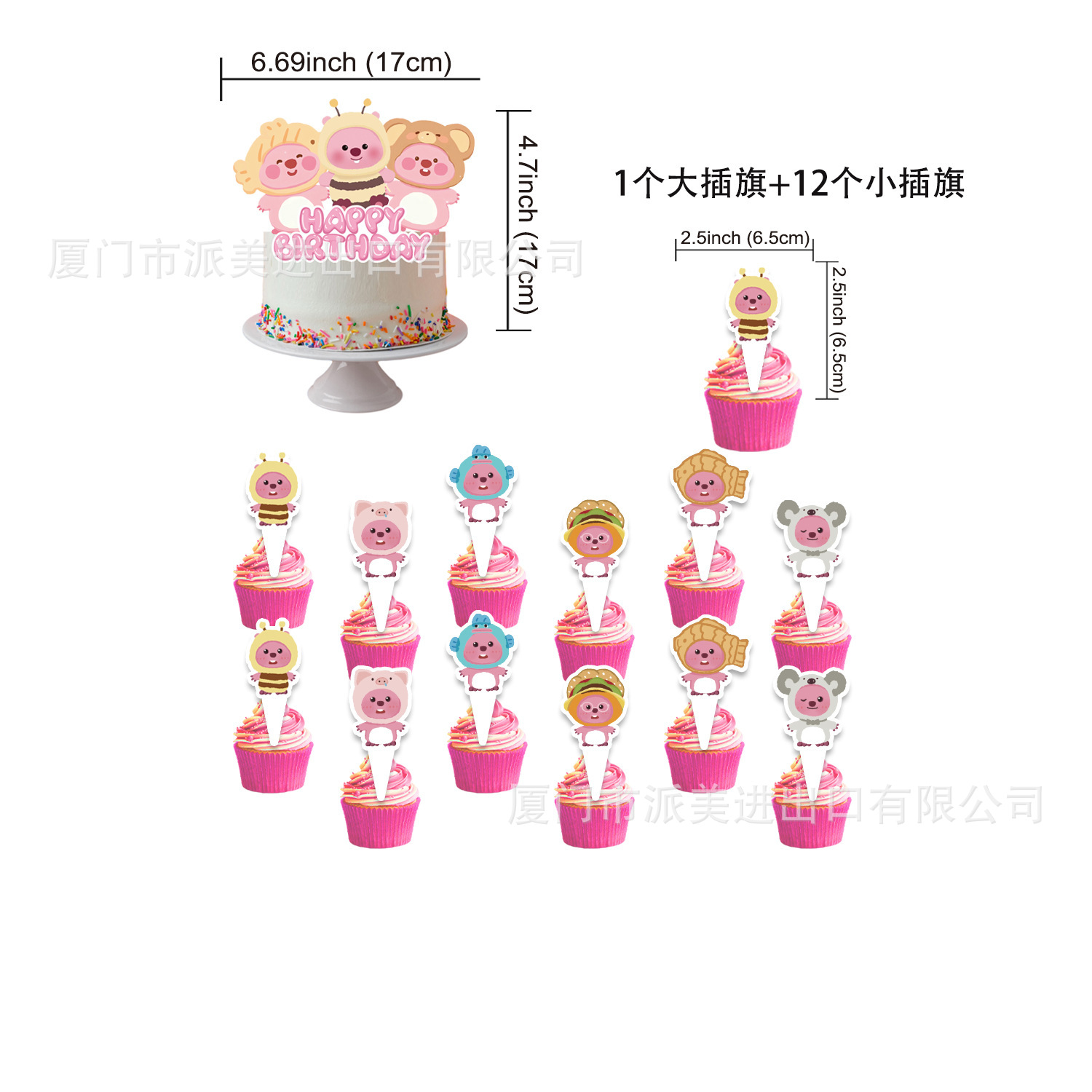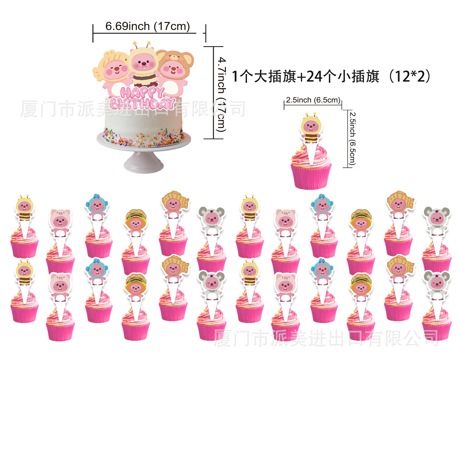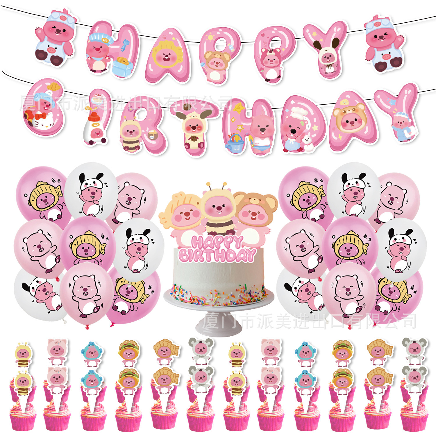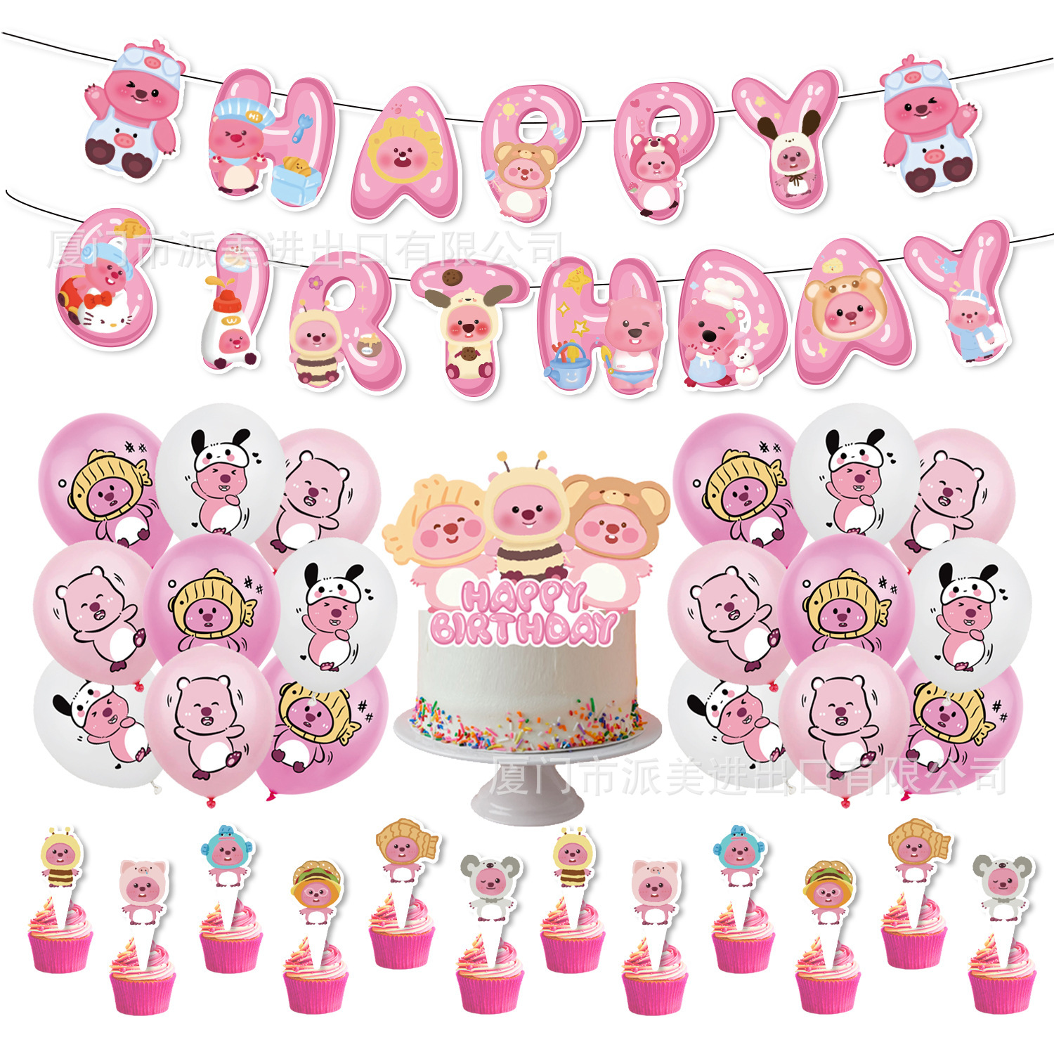 새로운 작은 비버 루비 테마 파티 장식 어린이 생일 장면 레이아웃 플래그 풀 플래그 풍선 세트