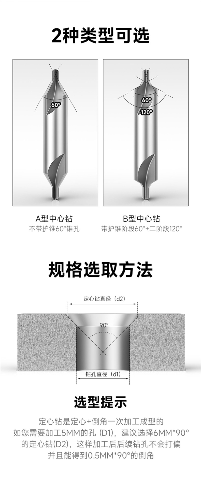 상하이 센터 드릴 유형 보호 콘 타입 B 형 센터링 드릴 1 1.5 2 3 4 5 6 8mm