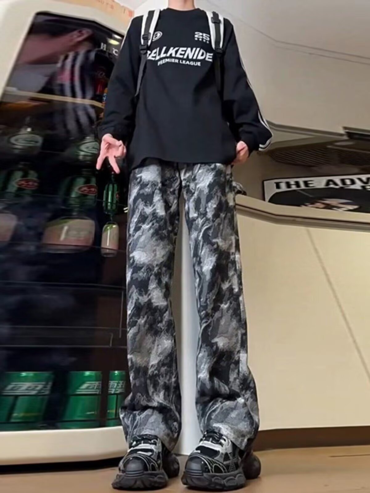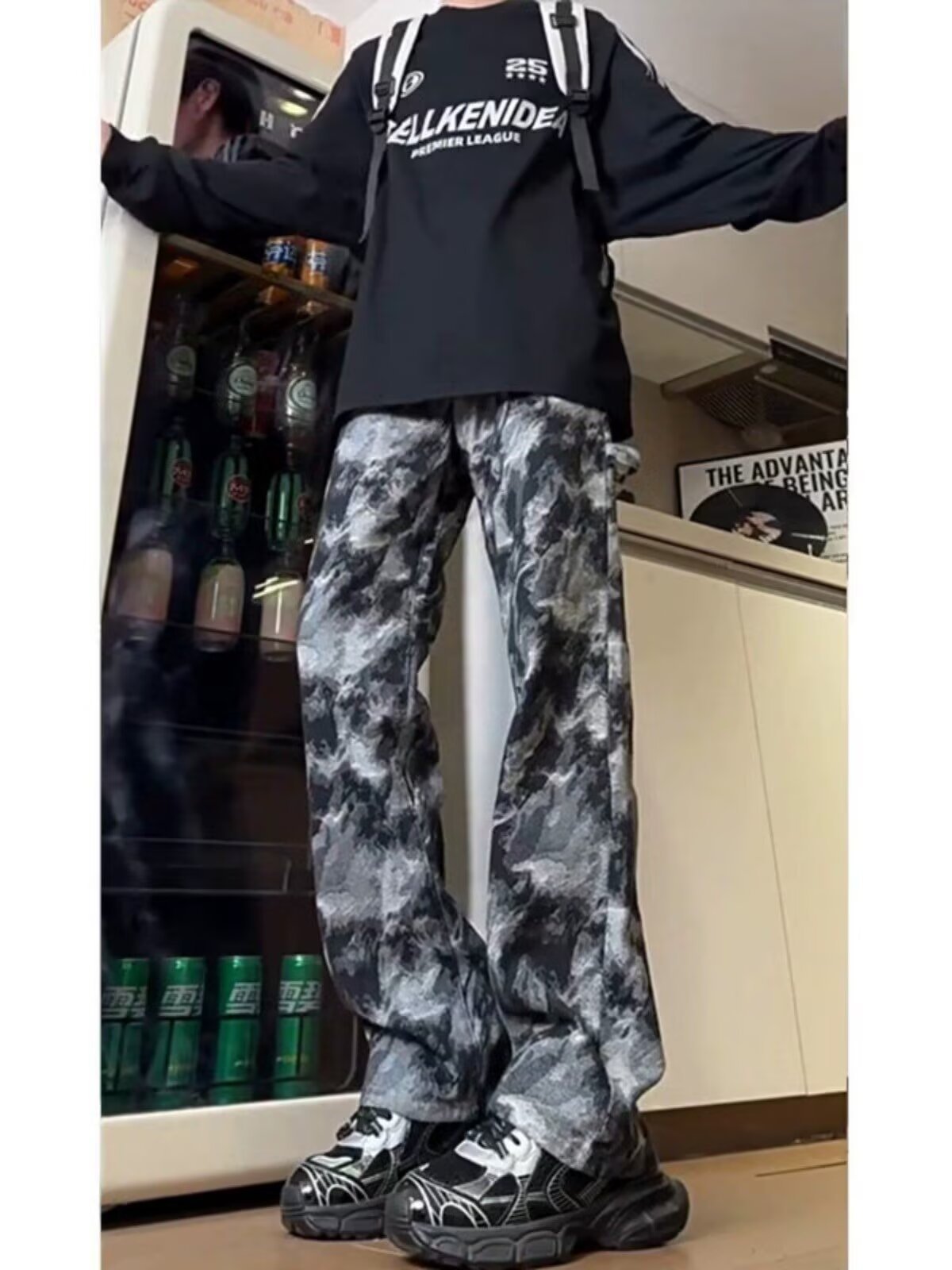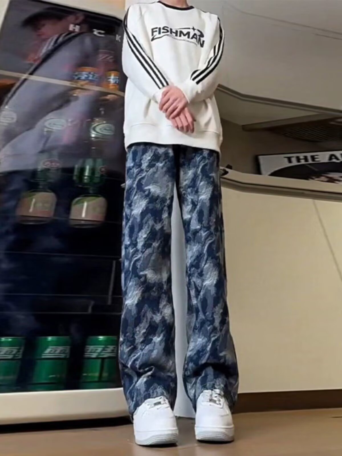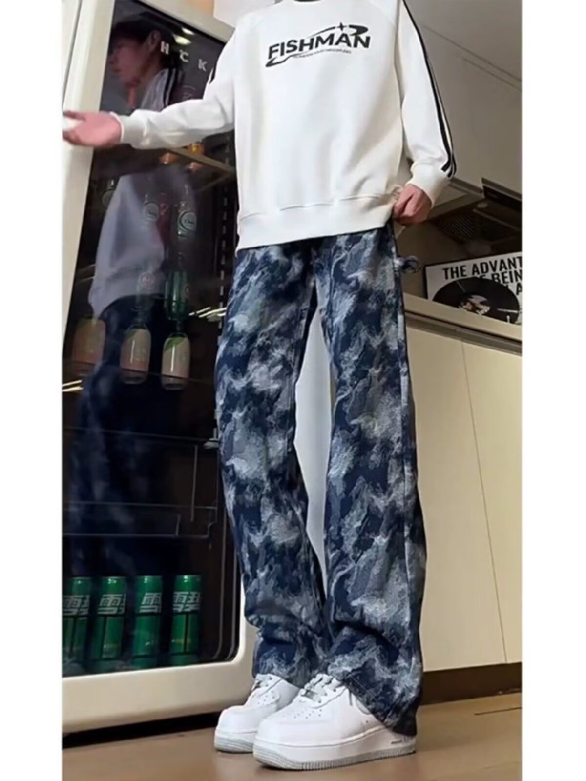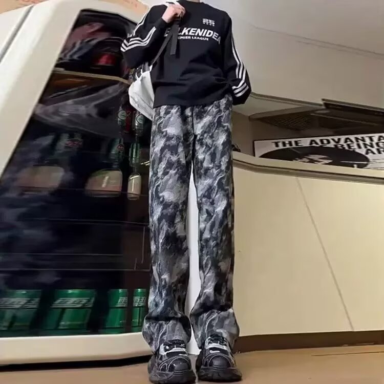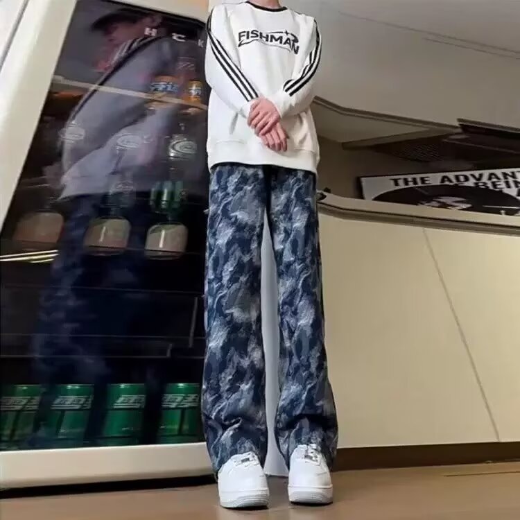 넥타이 염색 블루 위장 바지 남자 가을 미국 스타일 하이 스트리트 바이브 작업복 바지 유행 브랜드 Ruffian Shuai 프라이드 스트리트 스트레이트 바지스토어 가기