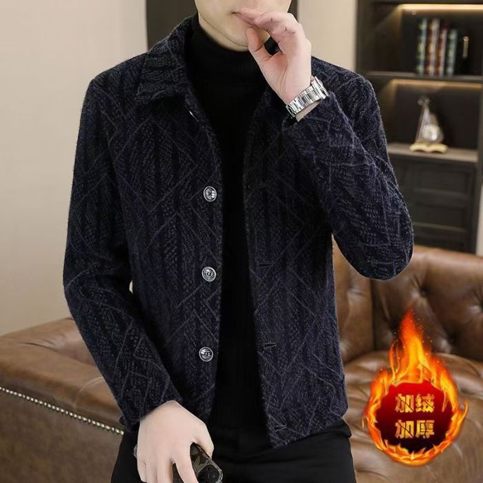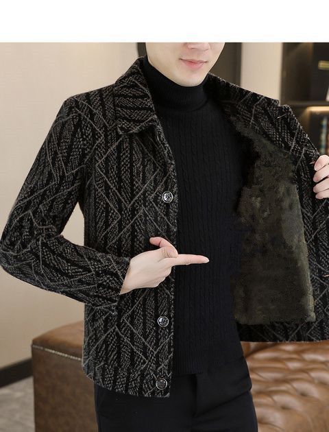 2024 가을과 겨울 모직 코트 짧은 캐주얼 두꺼운 옷깃 재킷 젊고 중년 캐주얼 올 매치 남자 자켓