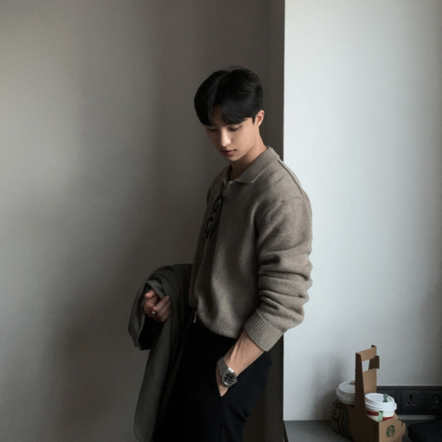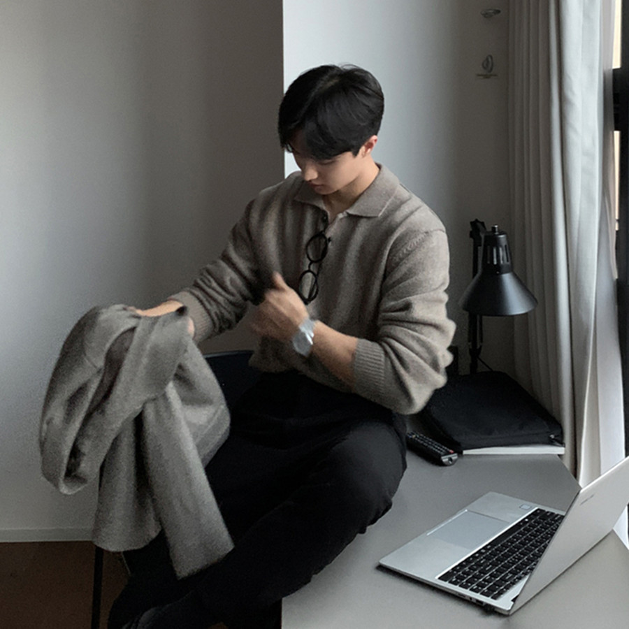 2024 년 가을 새로운 검은 스웨터 남자 일본 남자 최고 남자 플러스 사이즈 봄 가을 니트 셔츠