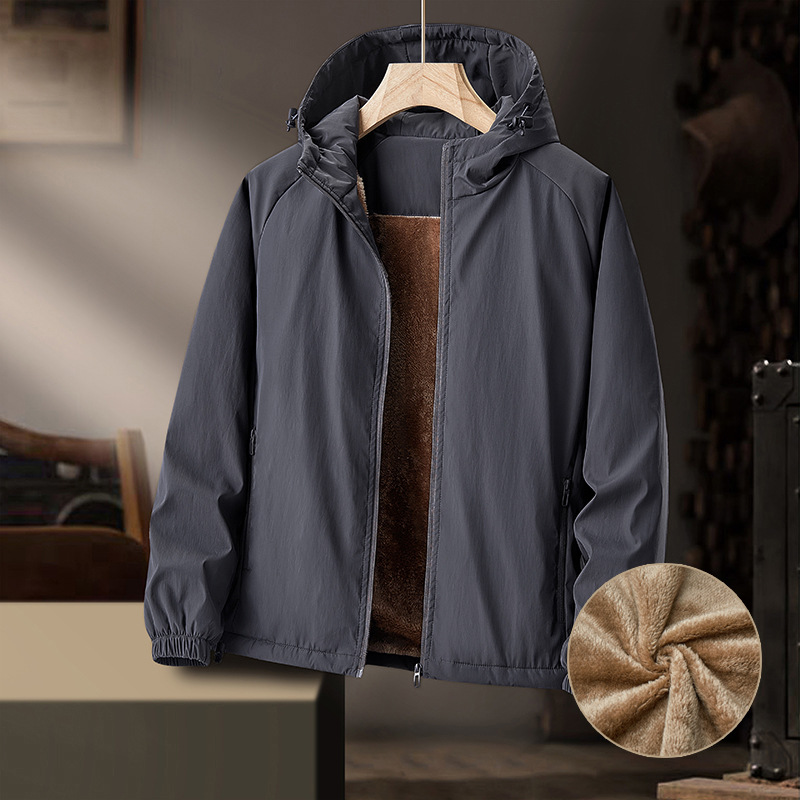 재킷 남자의 가을과 겨울 기모 느슨한 캐주얼 방풍 방수 마운틴 스타일 레트로 중년 및 노인 남성 후드 탑 재킷