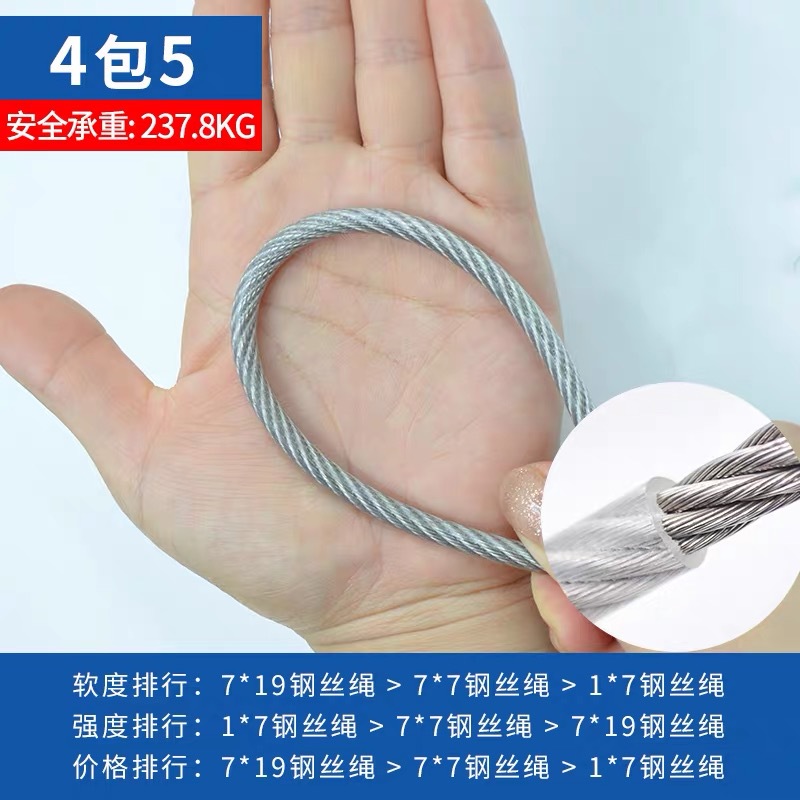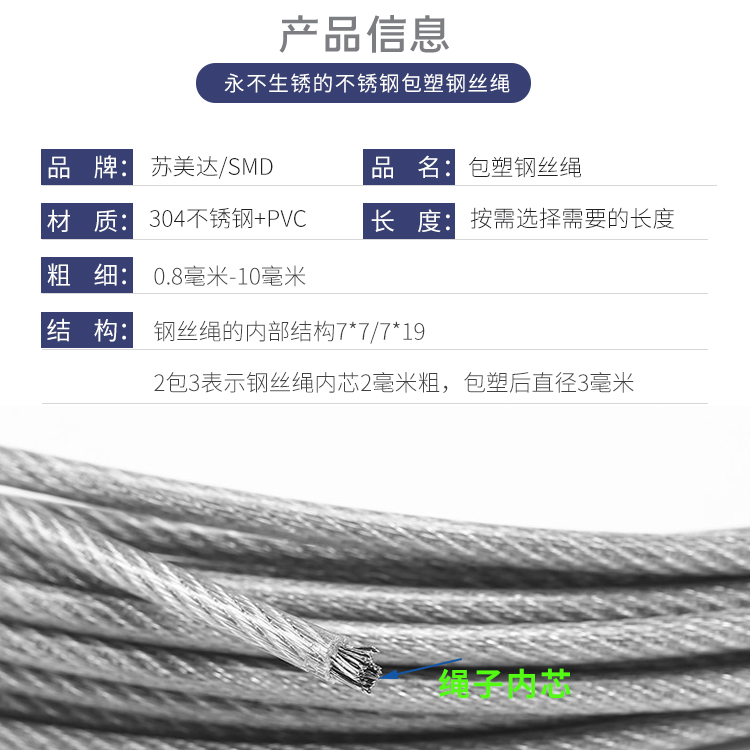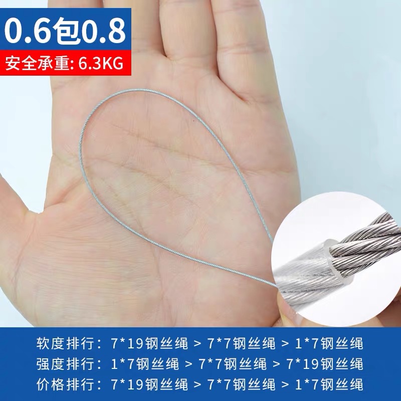 스테인레스 스틸 와이어 로프 304 1mm1.5mm2mm3mm4mm 거친 플라스틱 코팅 초정밀 부드러운 작은 강철 와이어 옷스토어 가기