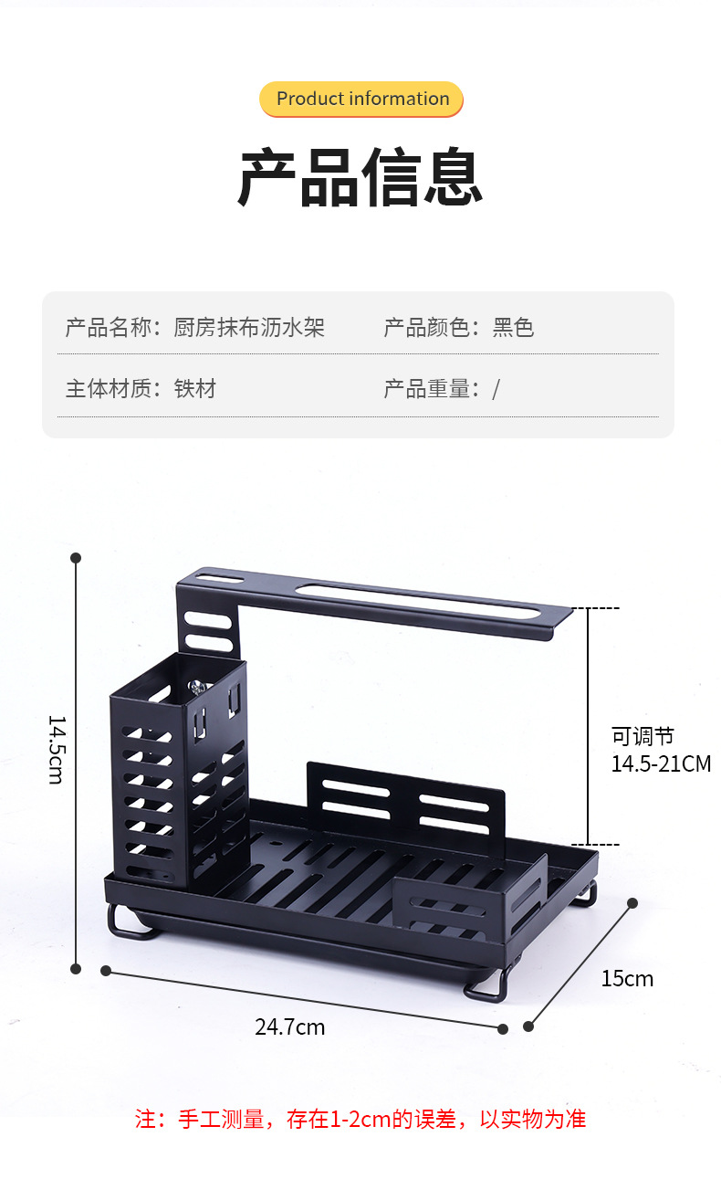 국경 간 간단한 저장 랙 접시 천 스폰지 타월 브러시 보관 펀치 프리 주방 접시 랙