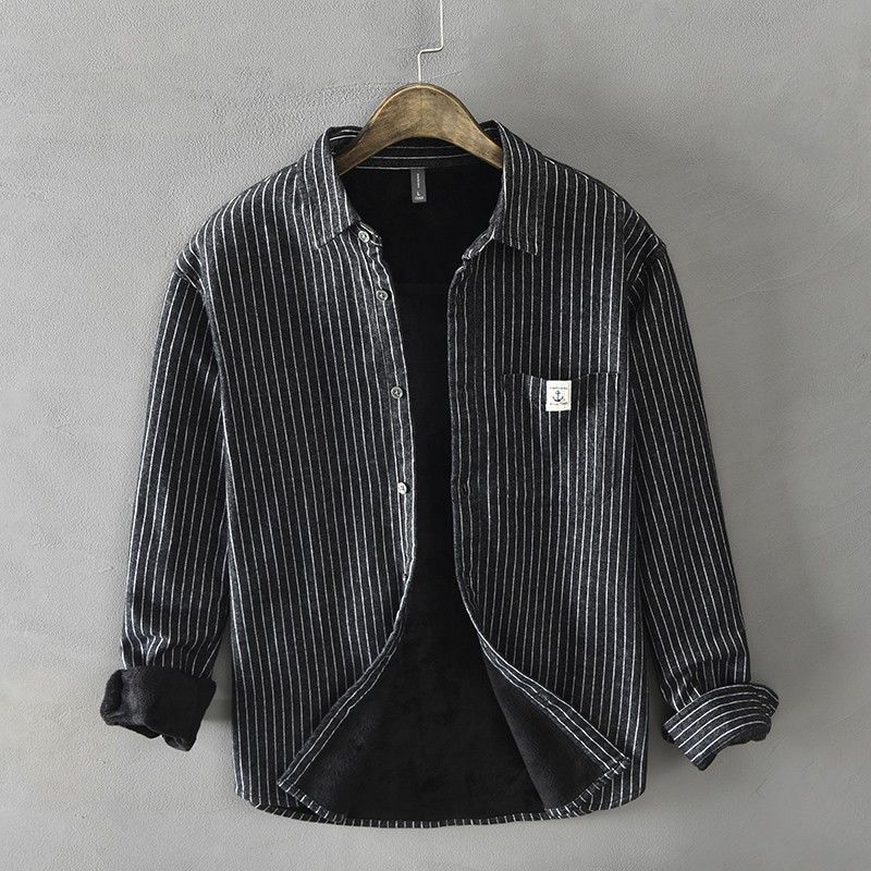 가을과 겨울 기모 두꺼운 따뜻한 셔츠 남성용 긴팔 유행 캐주얼 비즈니스 남성용 셔츠 면 셔츠스토어 가기