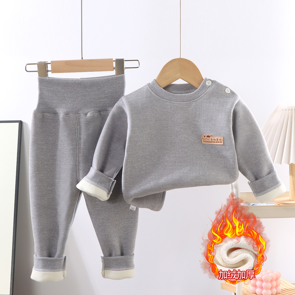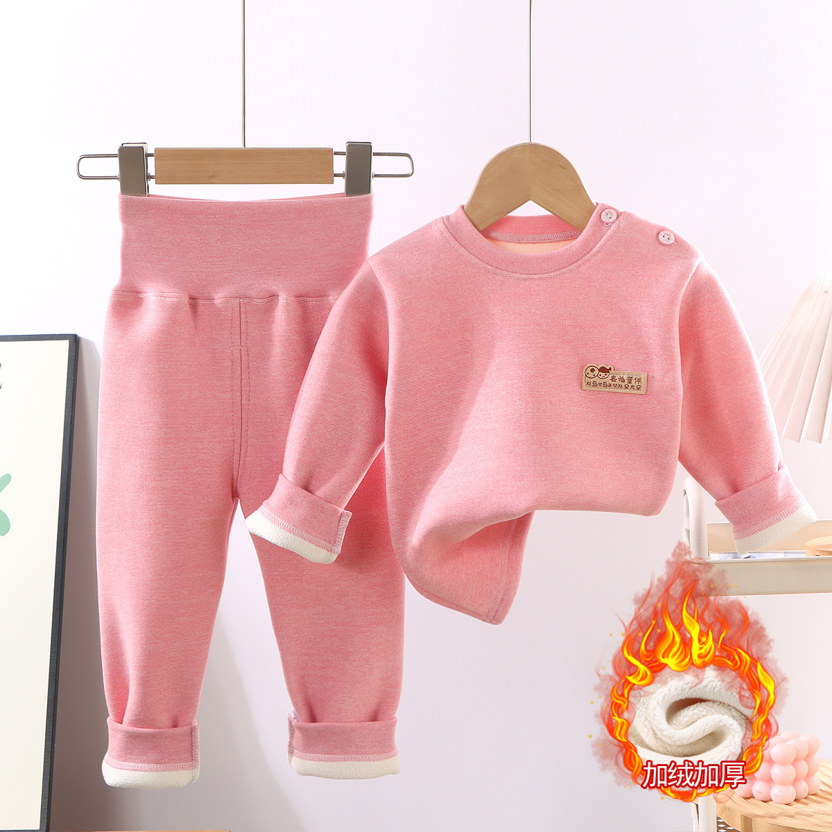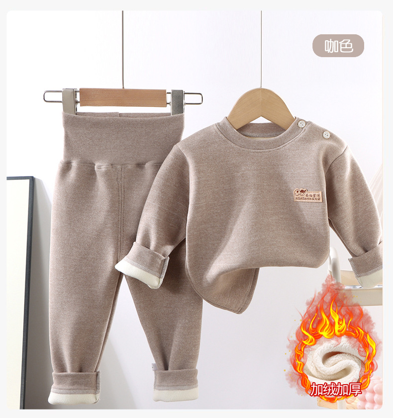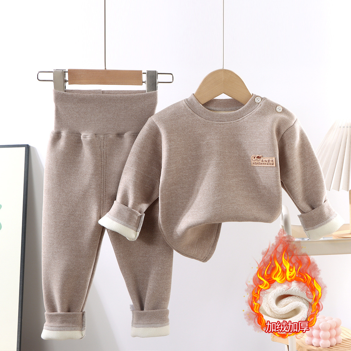 어린이 기모 속옷 세트 가을과 겨울 새 긴팔 가을 옷과 바지 두꺼운 따뜻한 중소형 소년 소녀 홈 옷