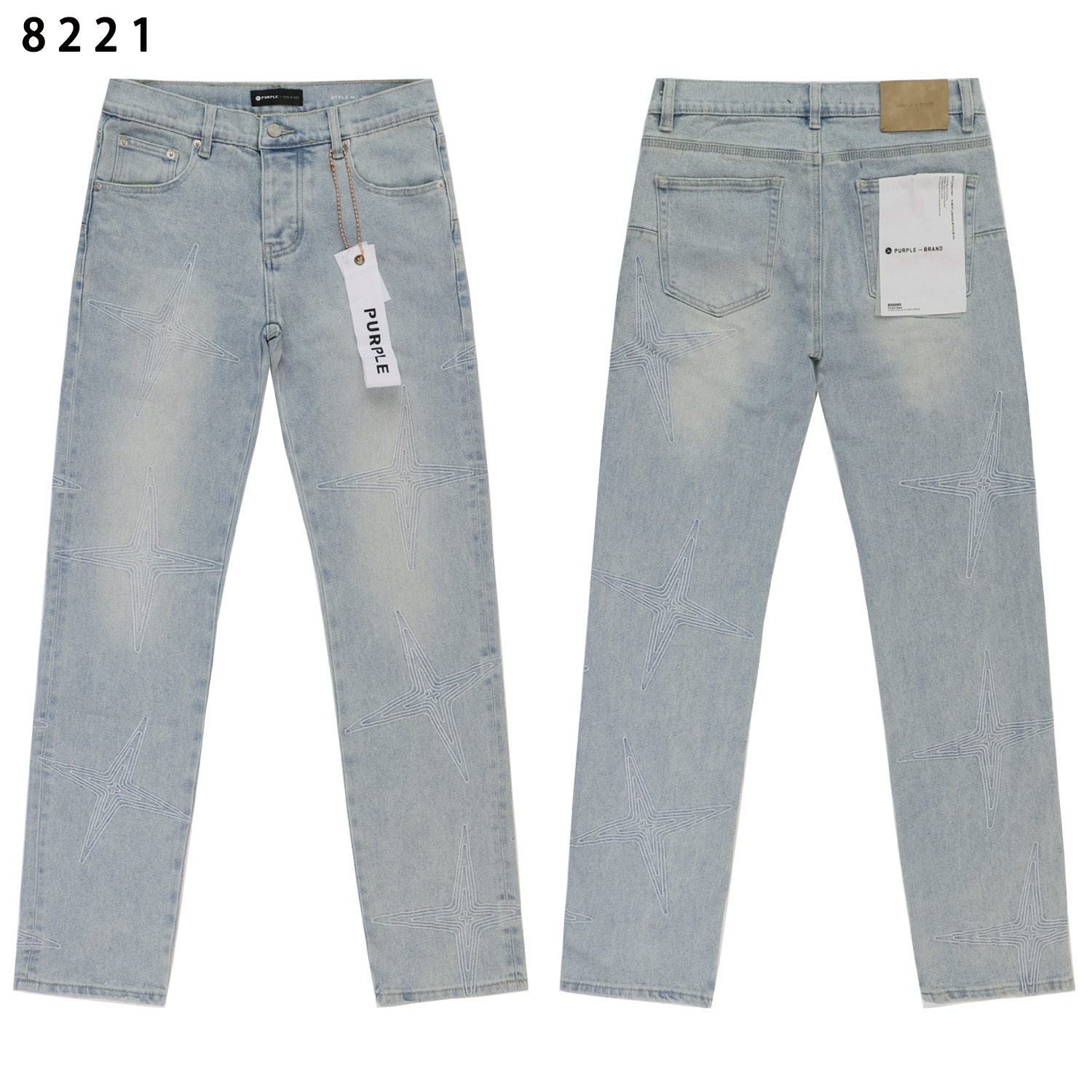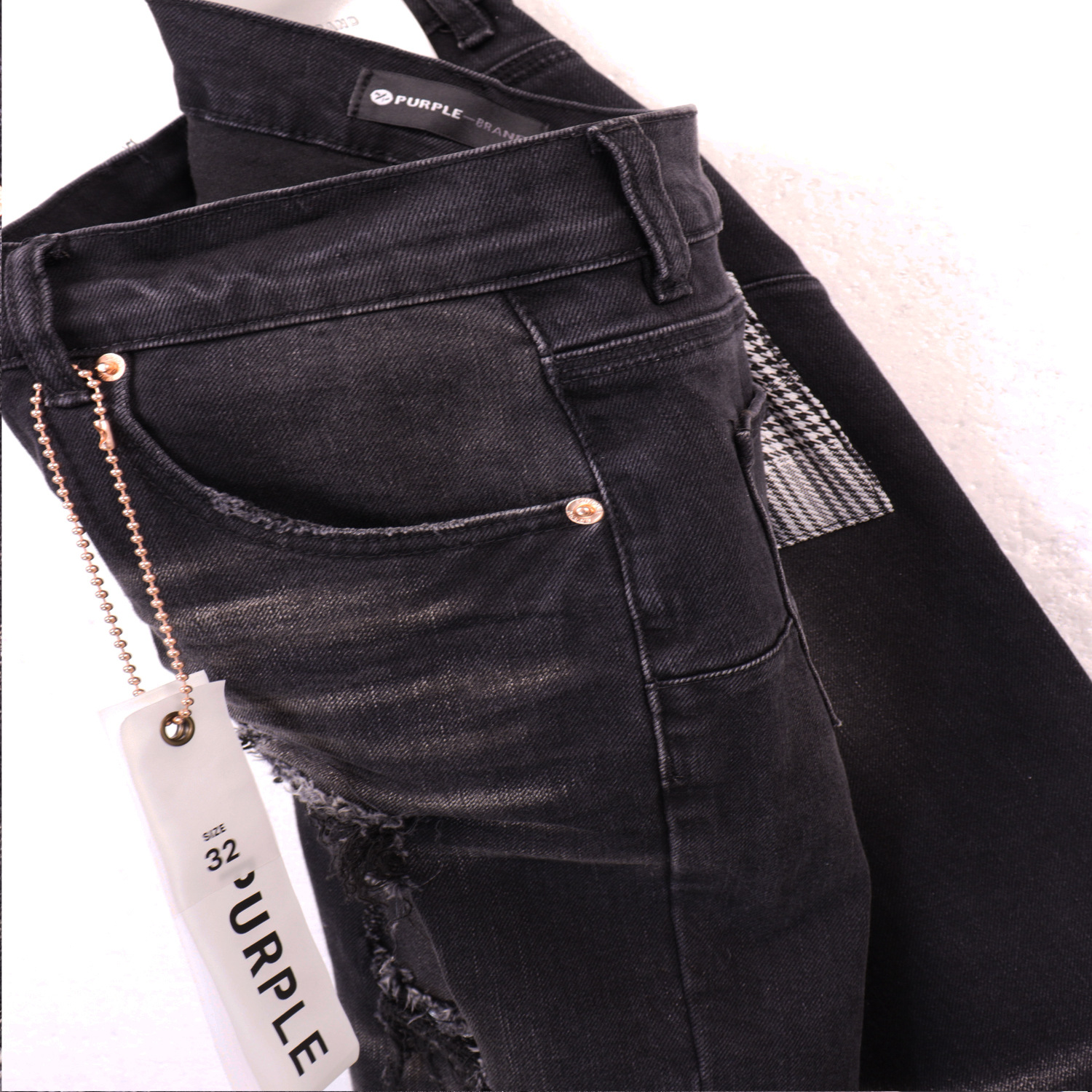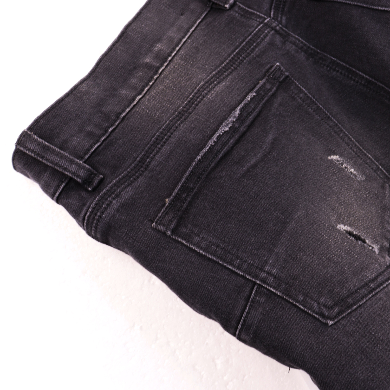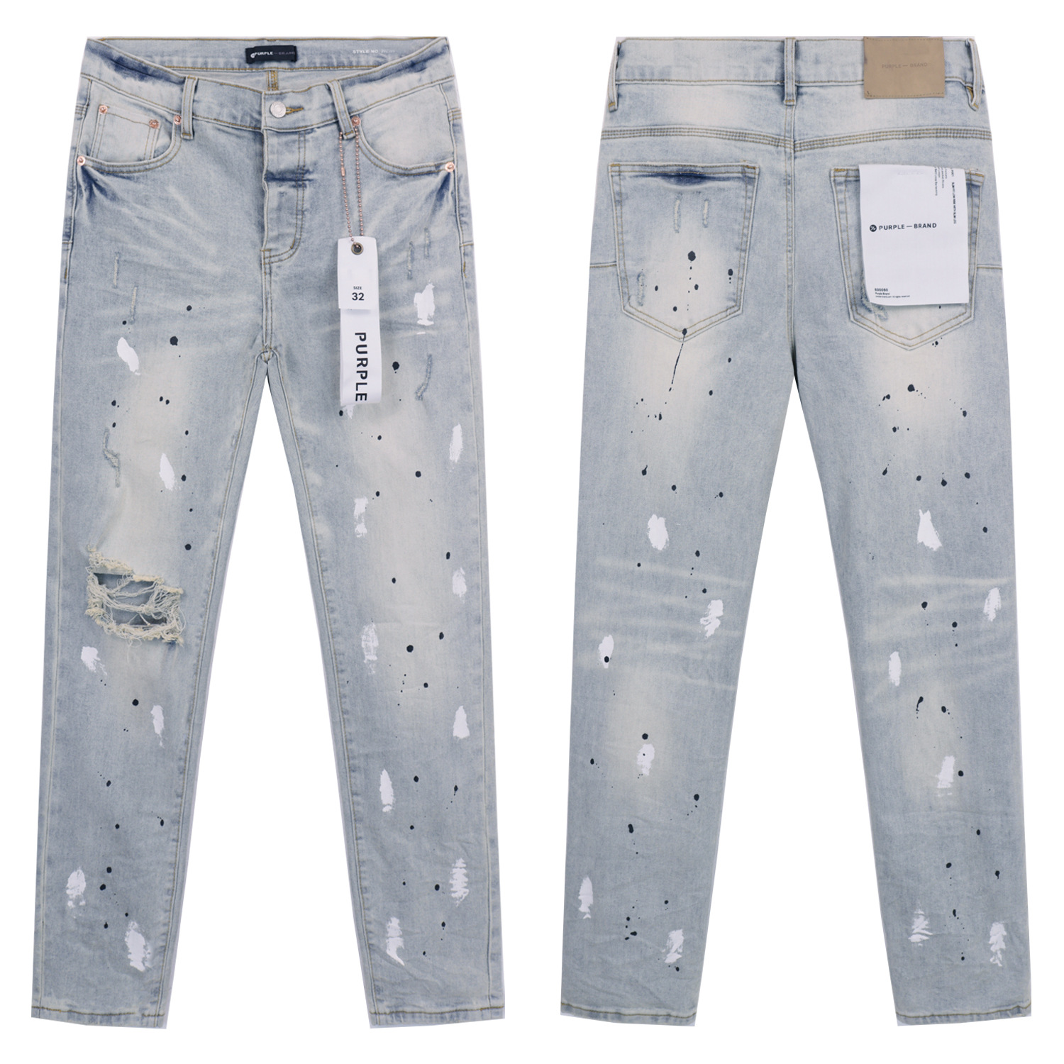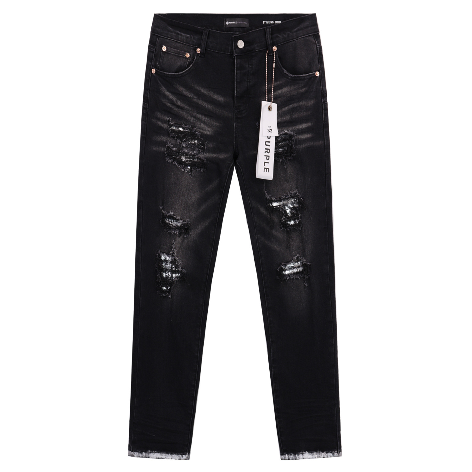 보라색 브랜드 남성 청바지 트렌디 브랜드 국경 재고 미국식 하이 스트리트 블랙 리핑 스키니 바지스토어 가기