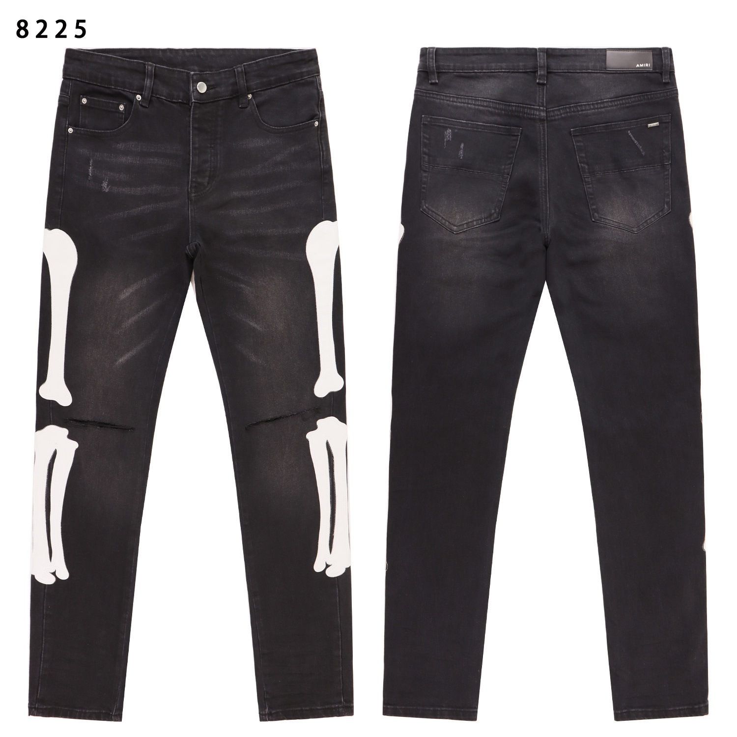 보라색 브랜드 남성 청바지 트렌디 브랜드 국경 재고 미국식 하이 스트리트 블랙 리핑 스키니 바지