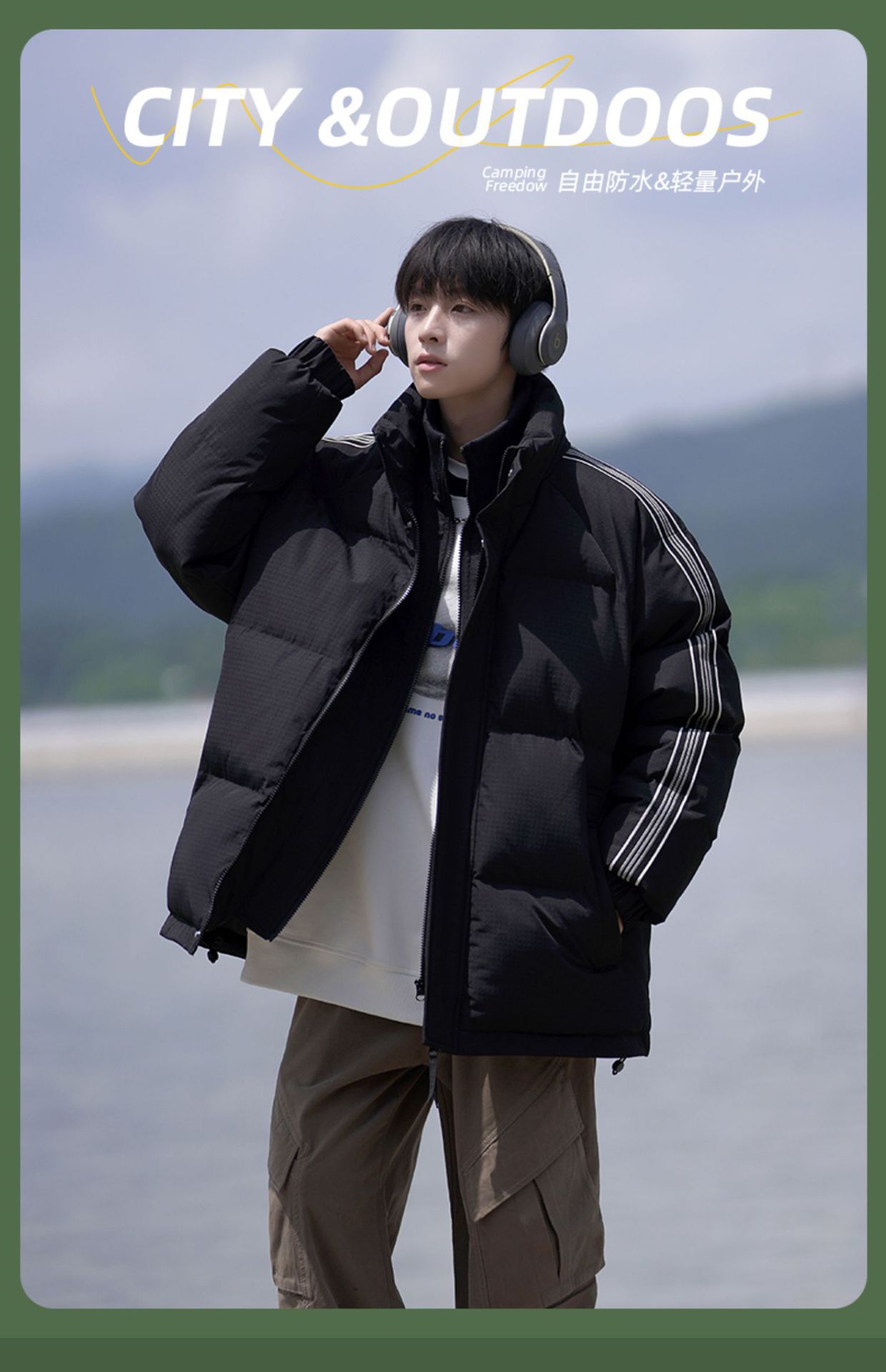 NASA 가짜 투피스 스탠드 칼라면 패딩 재킷 남자 겨울 2024 새로운 기모 패딩면 패딩 재킷 따뜻한면 패딩 재킷 코트 조수스토어 가기
