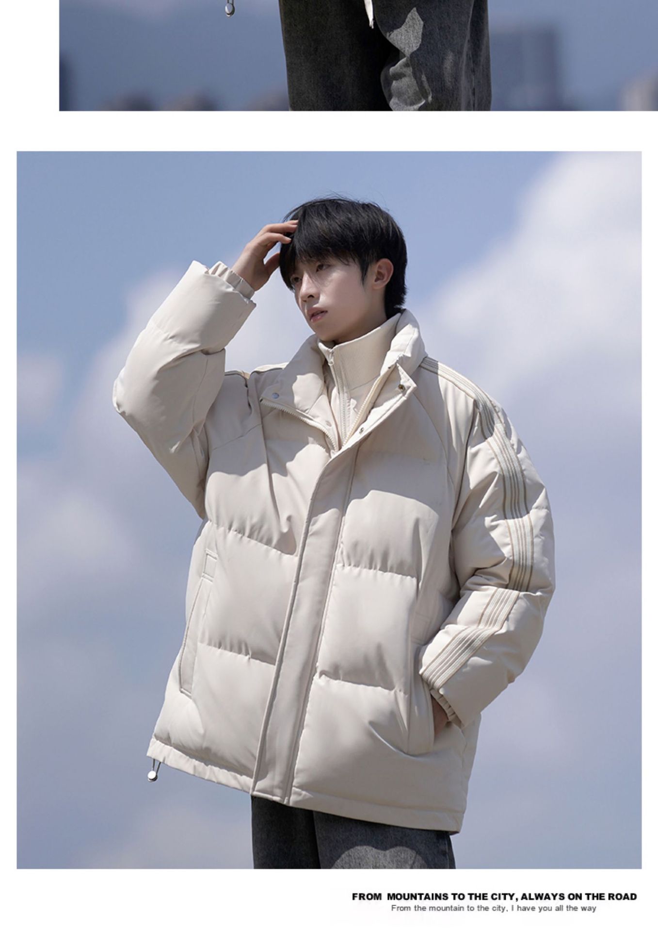 NASA 가짜 투피스 스탠드 칼라면 패딩 재킷 남자 겨울 2024 새로운 기모 패딩면 패딩 재킷 따뜻한면 패딩 재킷 코트 조수