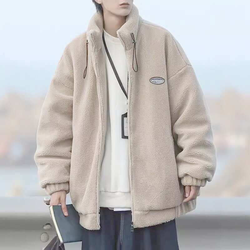 일본식 cityboy Cotton-padded Coat 남자 겨울 기모 두꺼운 한국식 양가죽 코트 느슨한 유행 칼라 코튼 패딩 코트스토어 가기