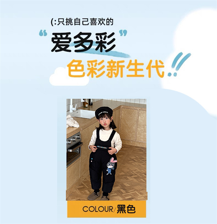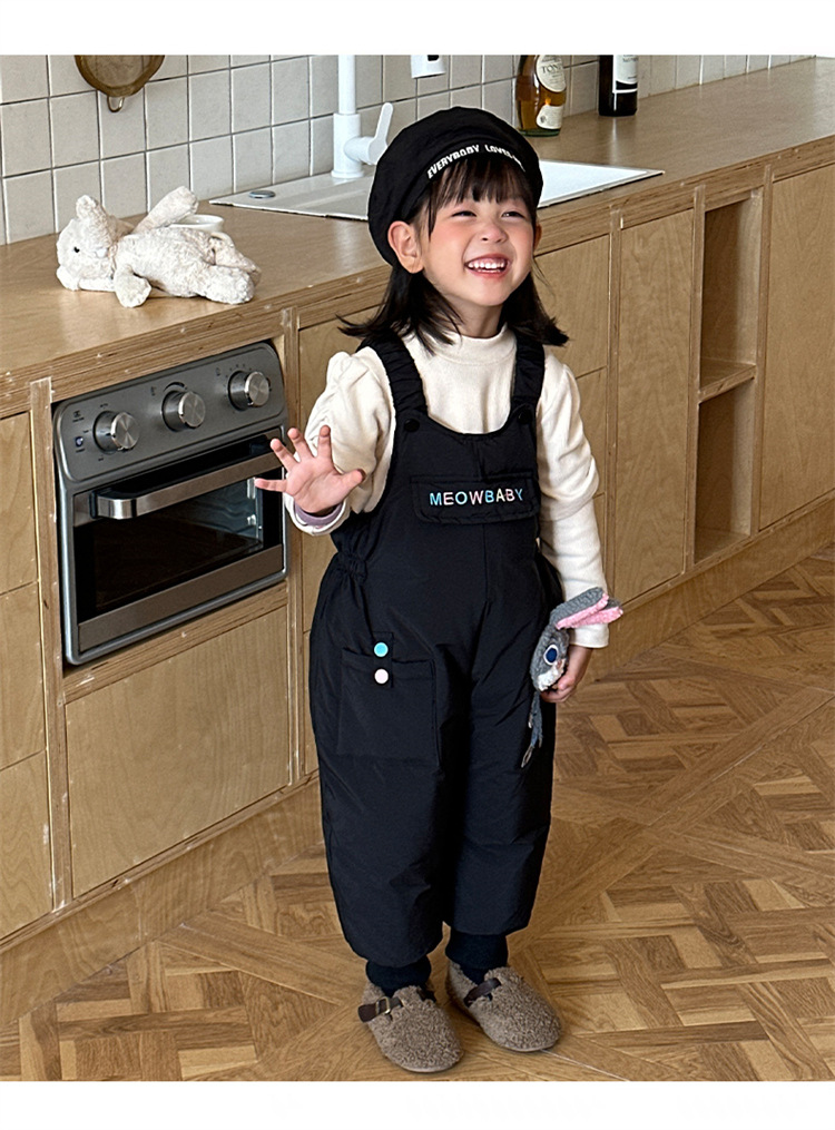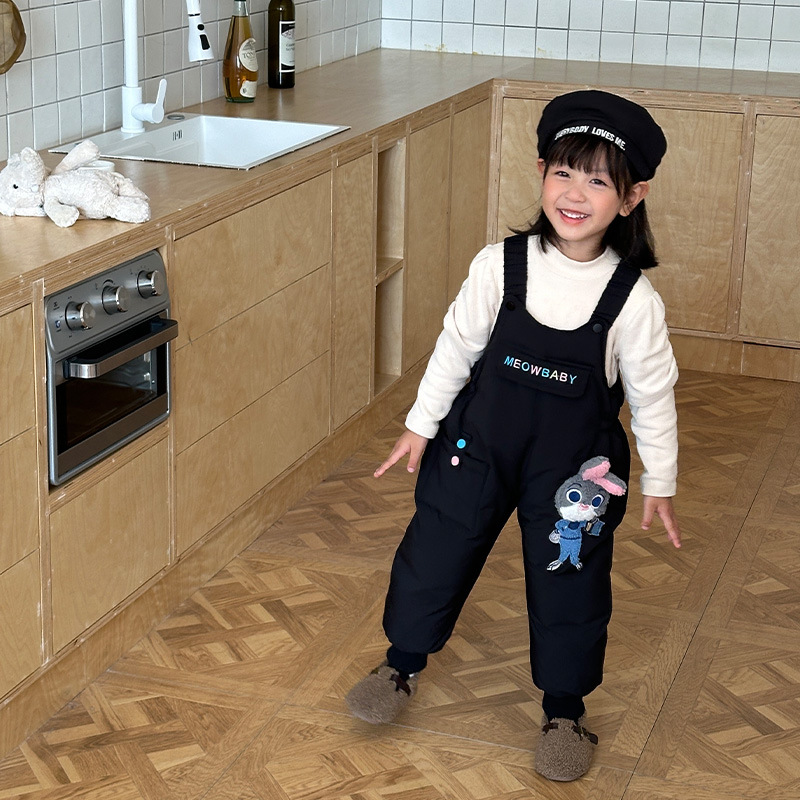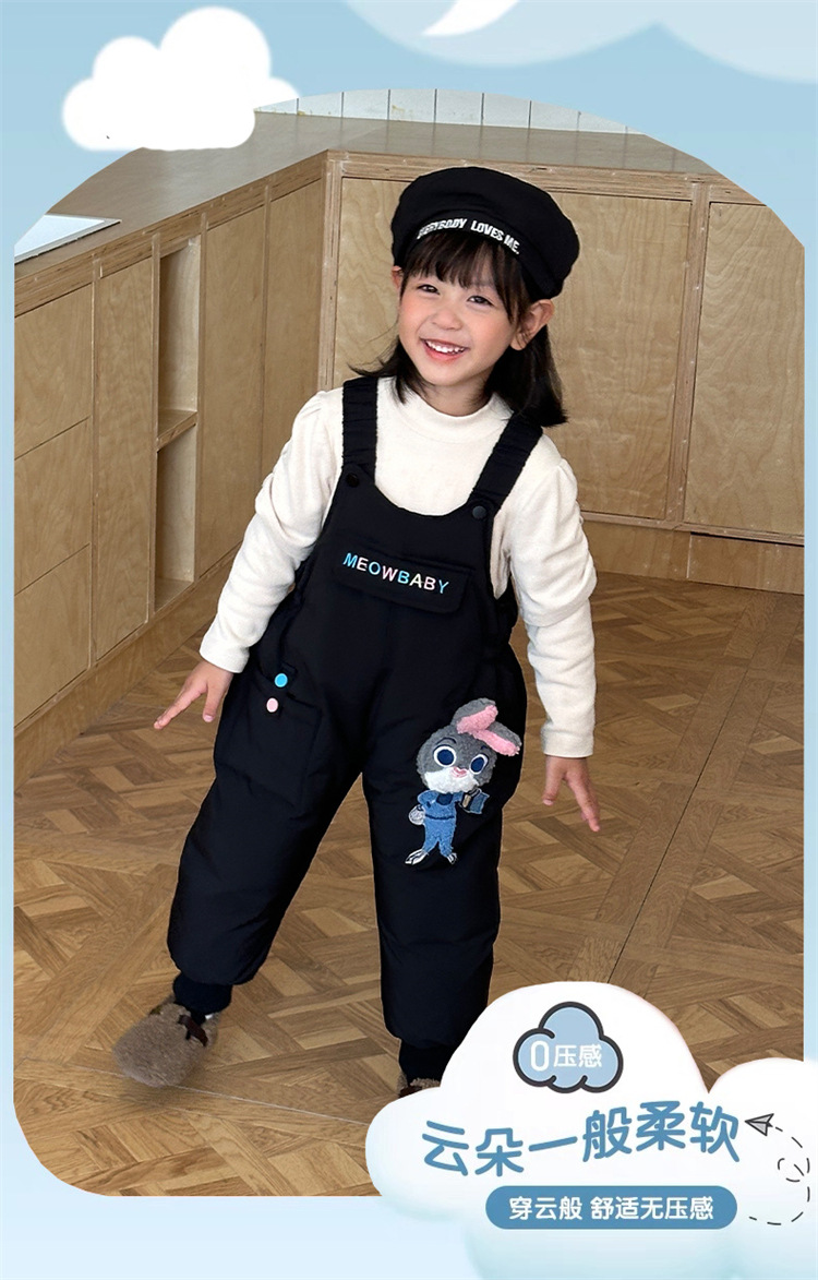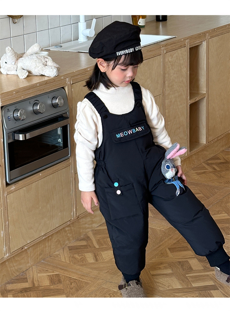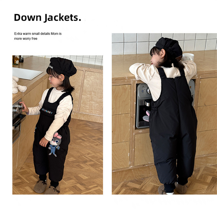 소녀 다운 스트랩 바지 겨울 착용 어린이 흰 오리 다운 토끼 경찰관 바지 어린이 소녀 따뜻한 겨울 바지스토어 가기