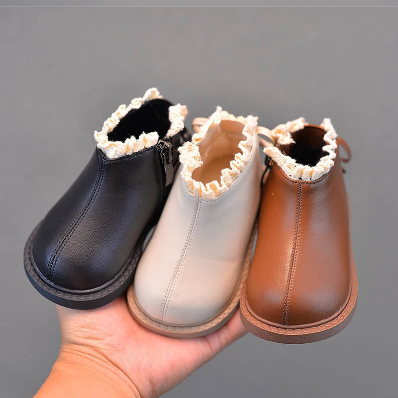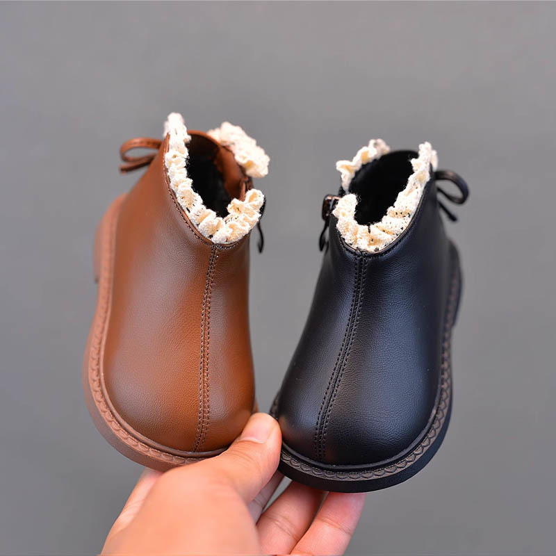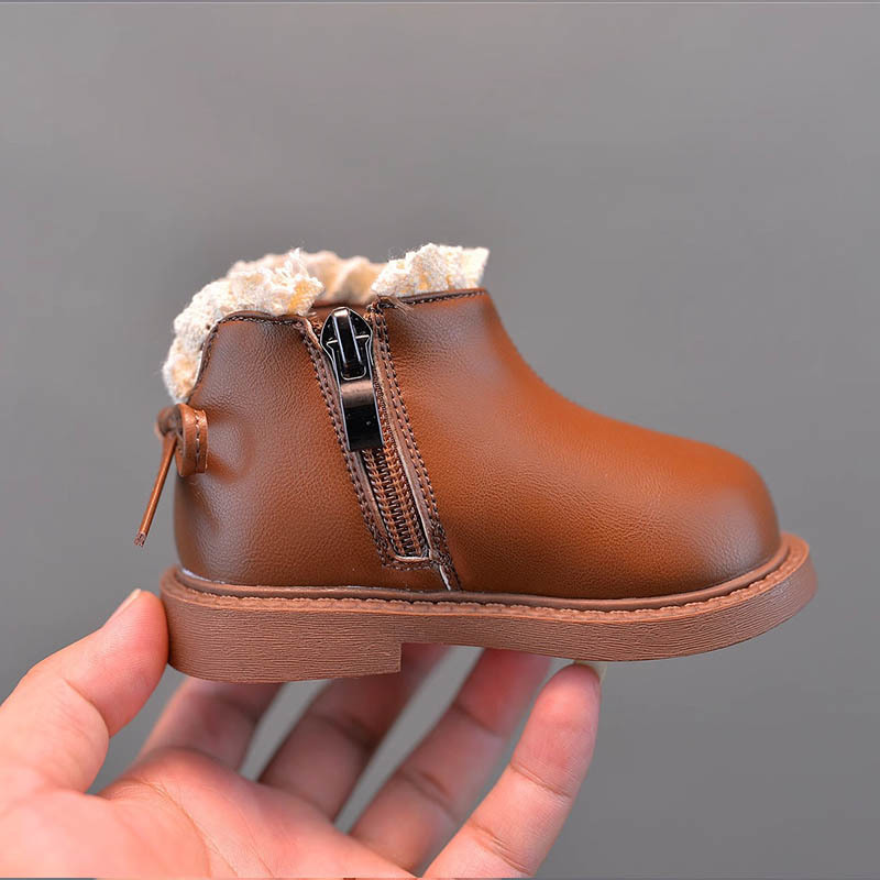 2024 가을과 겨울 아기 소녀 신발 짧은 부츠 작은 가죽 신발 아기 부드러운 유아 신발 소녀 부츠 어린이 공주 신발