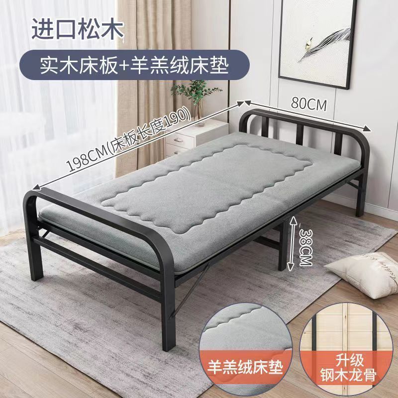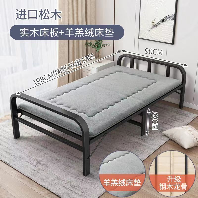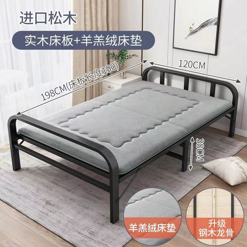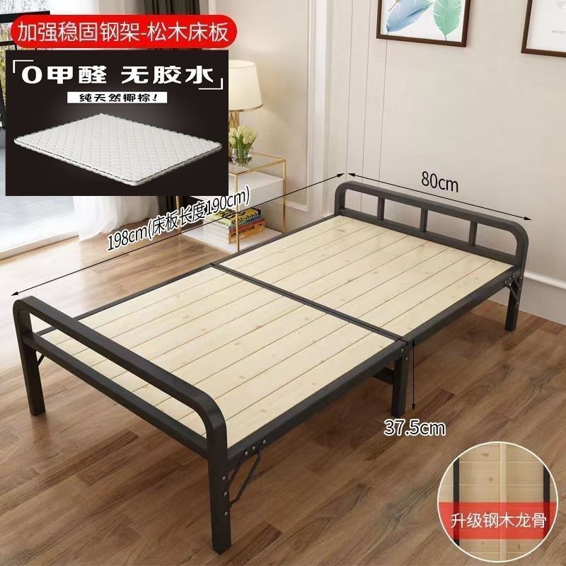 접이식 침대 싱글 침대 더블 침대 가정용 하드 보드 침대 간단한 스티칭 침대 아이언 스틸 우드 침대 성인 1 미터 98스토어 가기