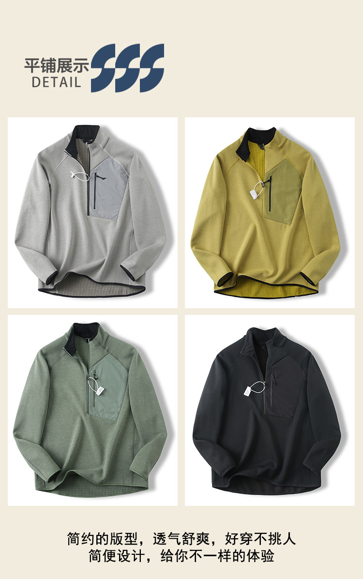 야외 가을과 겨울 방풍 칼라 반 지퍼 땀 기모 두꺼운 따뜻한 양털 땀 야외 캐주얼 스포츠 땀
