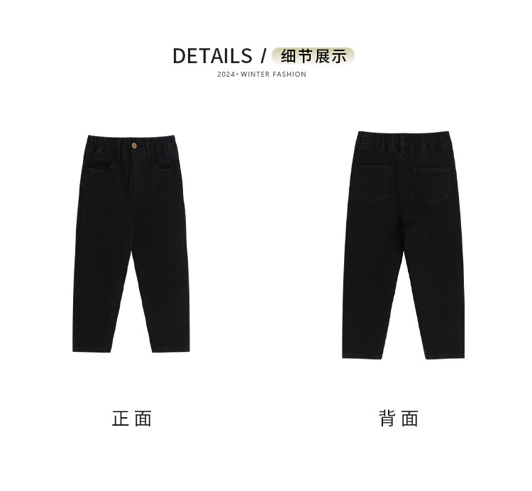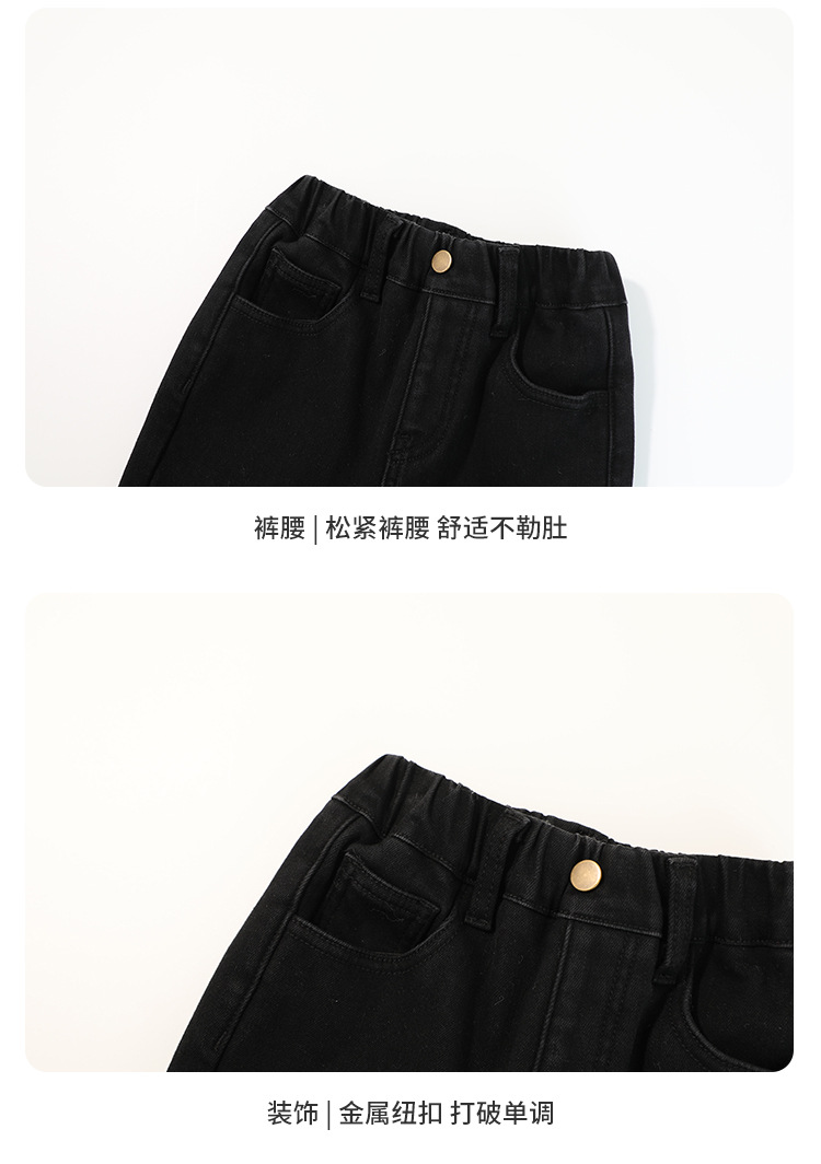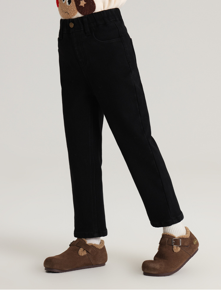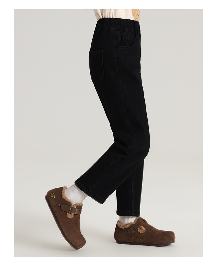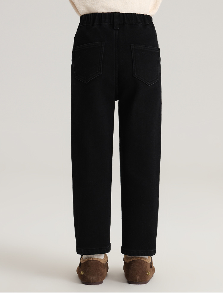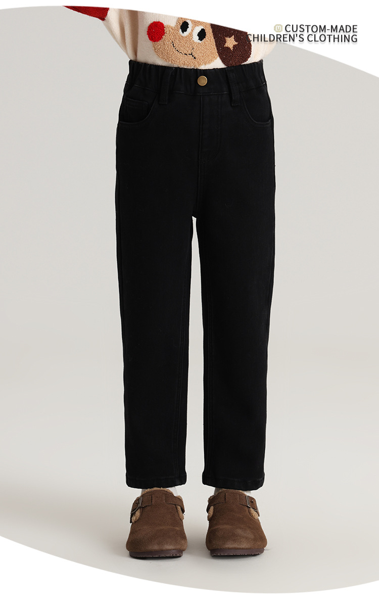 Momo Children's Wear Winter Wear Girl's All match 양털 추가 바지 2024 겨울 새 어린이 검은 스트레치 데님 바지스토어 가기