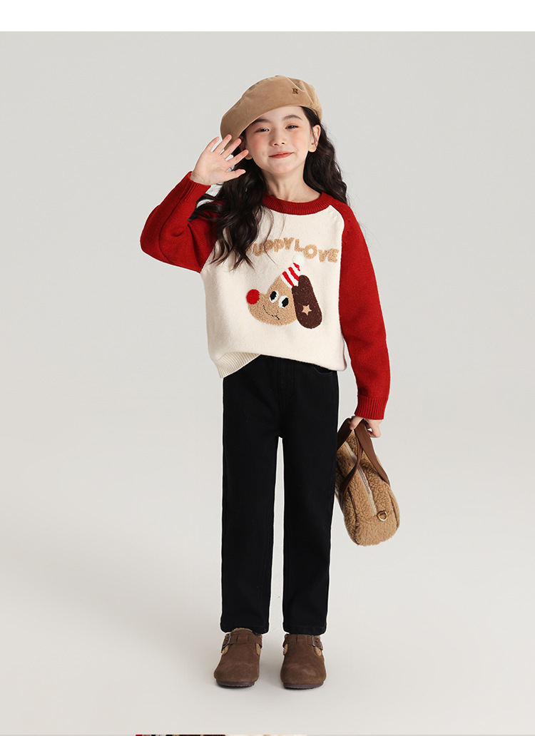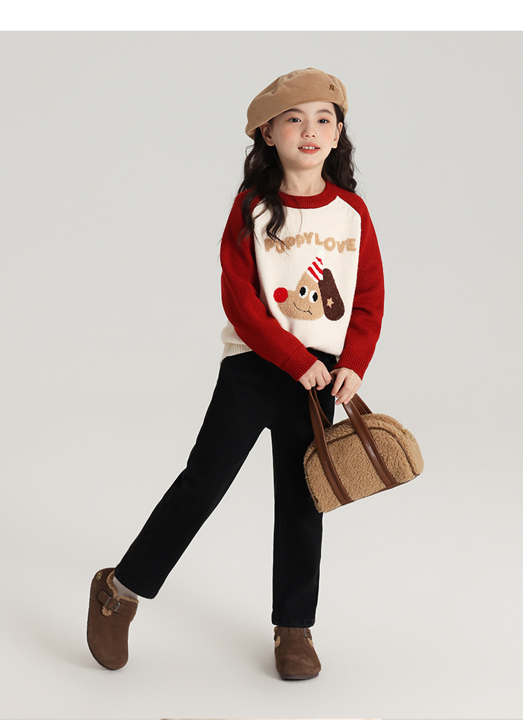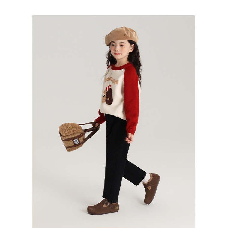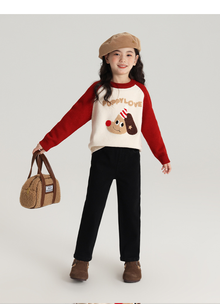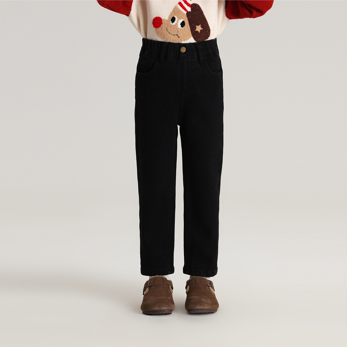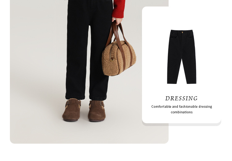 Momo Children's Wear Winter Wear Girl's All match 양털 추가 바지 2024 겨울 새 어린이 검은 스트레치 데님 바지스토어 가기