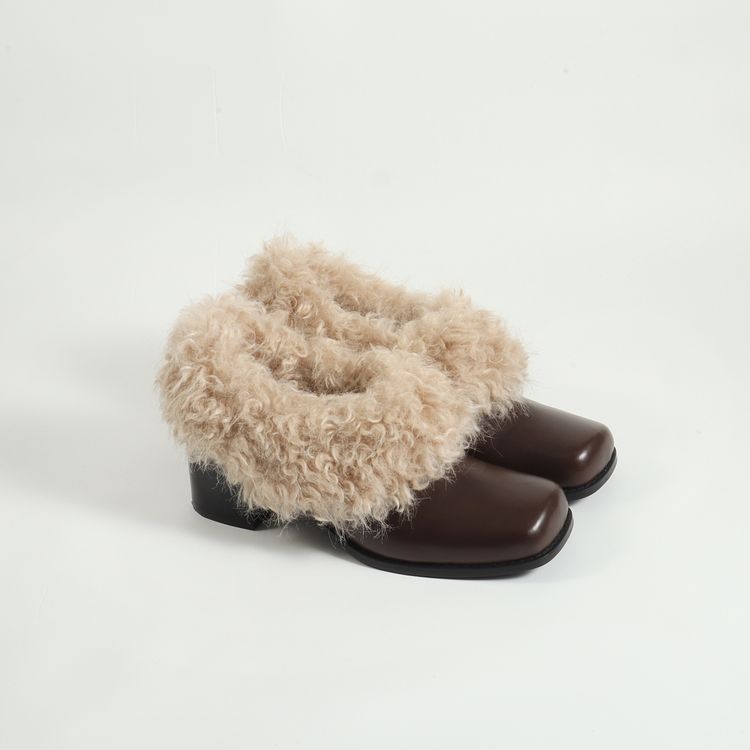 스퀘어 헤드 두꺼운 힐 마오 로퍼 여성 가을 겨울 2024 새로운 한국 올 매치 작은 가죽 신발 면화 마오 마오 신발스토어 가기