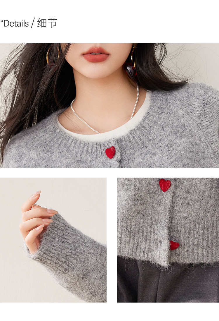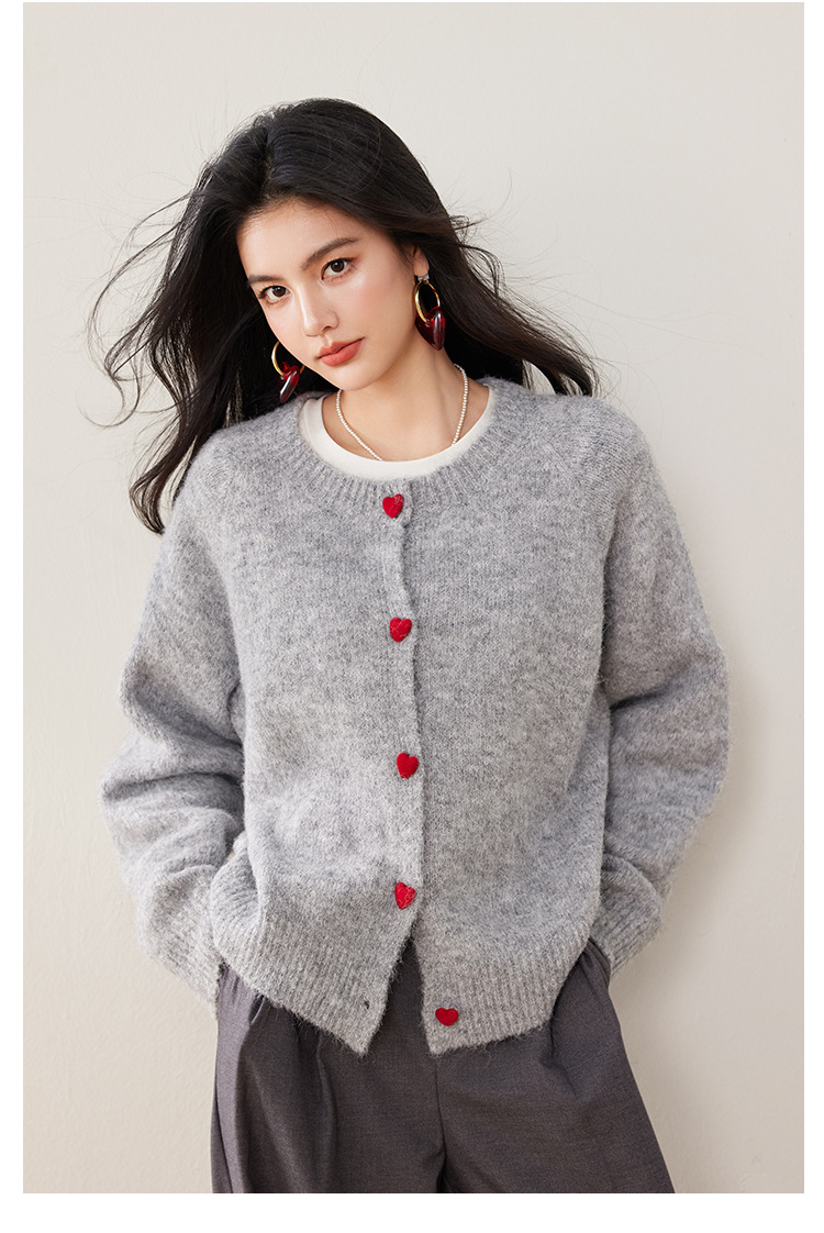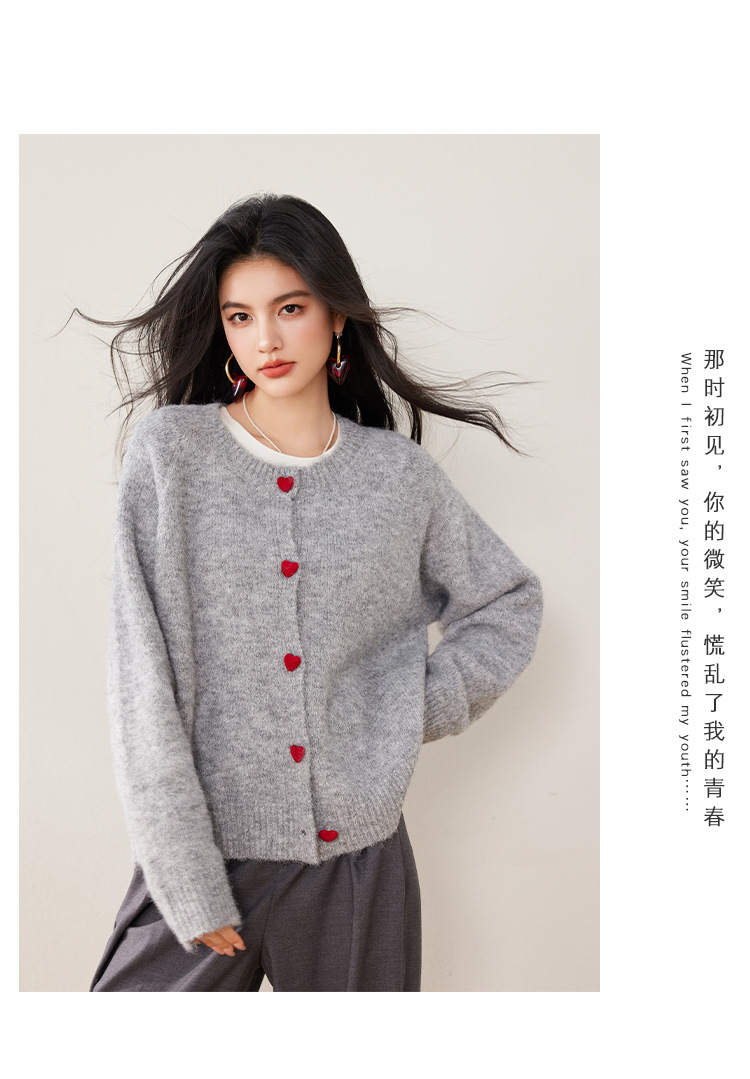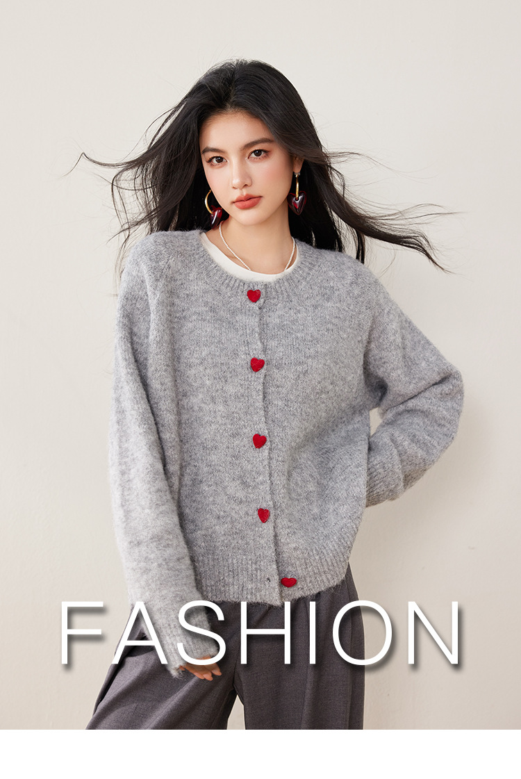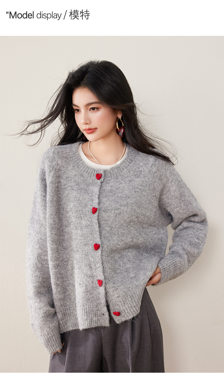 2024 겨울 새로운 한국 스타일 달콤하고 장난스러운 디자인 사랑 버튼 스웨터 카디건 라운드 넥 니트 자켓스토어 가기