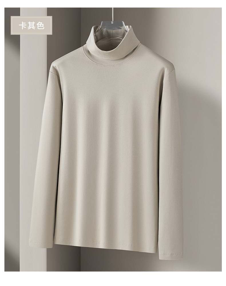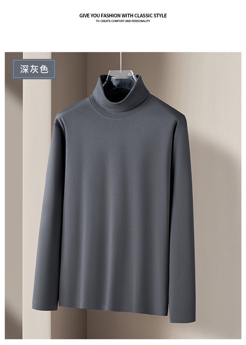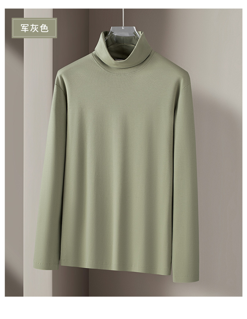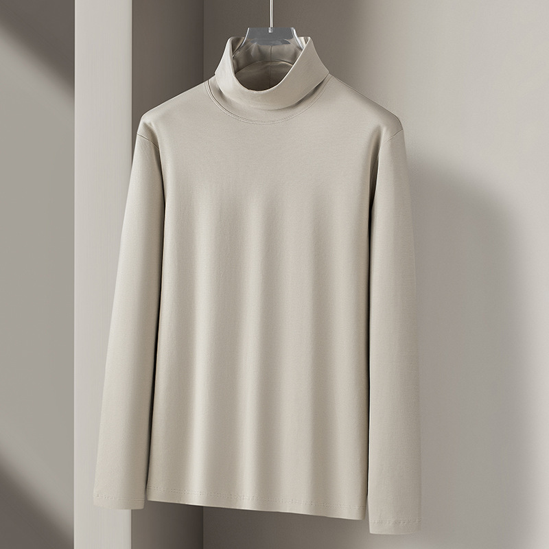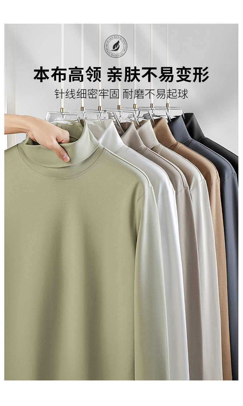 Liquid Ammonia mercerized Cotton High Collar Base 남성용 봄과 가을 정전기 방지 긴팔 티셔츠 피부 친화적 인 Inner Top Middle Collar스토어 가기