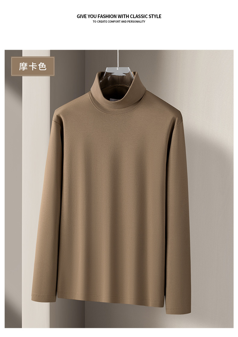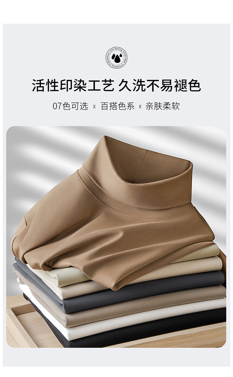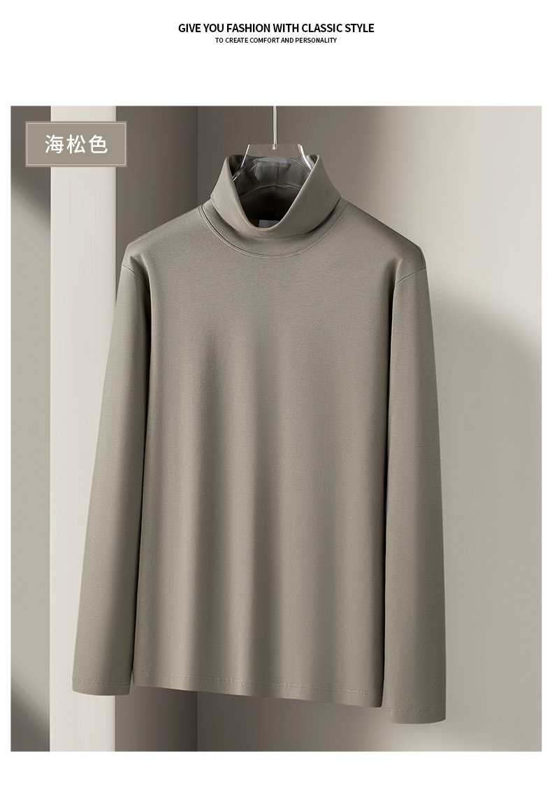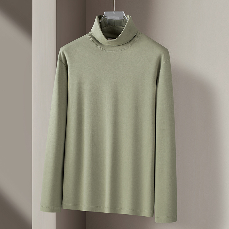 Liquid Ammonia mercerized Cotton High Collar Base 남성용 봄과 가을 정전기 방지 긴팔 티셔츠 피부 친화적 인 Inner Top Middle Collar스토어 가기
