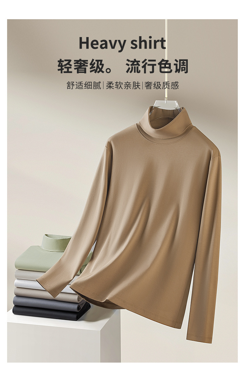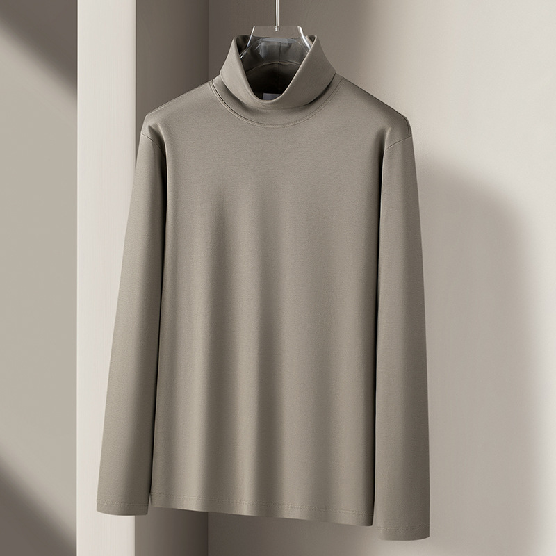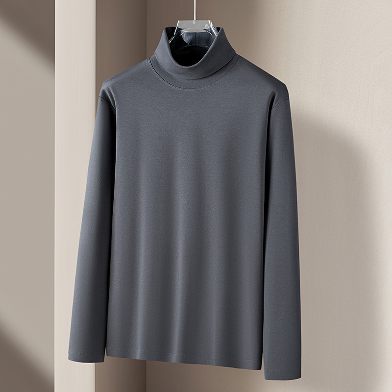 Liquid Ammonia mercerized Cotton High Collar Base 남성용 봄과 가을 정전기 방지 긴팔 티셔츠 피부 친화적 인 Inner Top Middle Collar