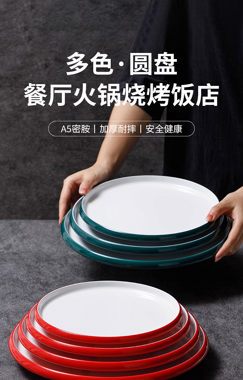 멜라민 디스크 상업용 차가운 요리 냄비 바베큐 레스토랑 반찬 플레이트 모방 도자기 뼈 접시 호텔 레스토랑 뷔페 플레이트