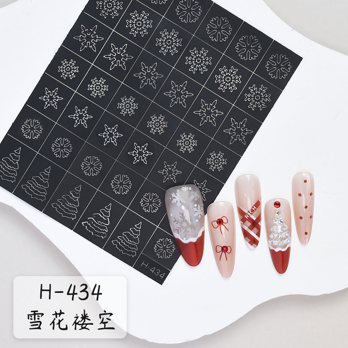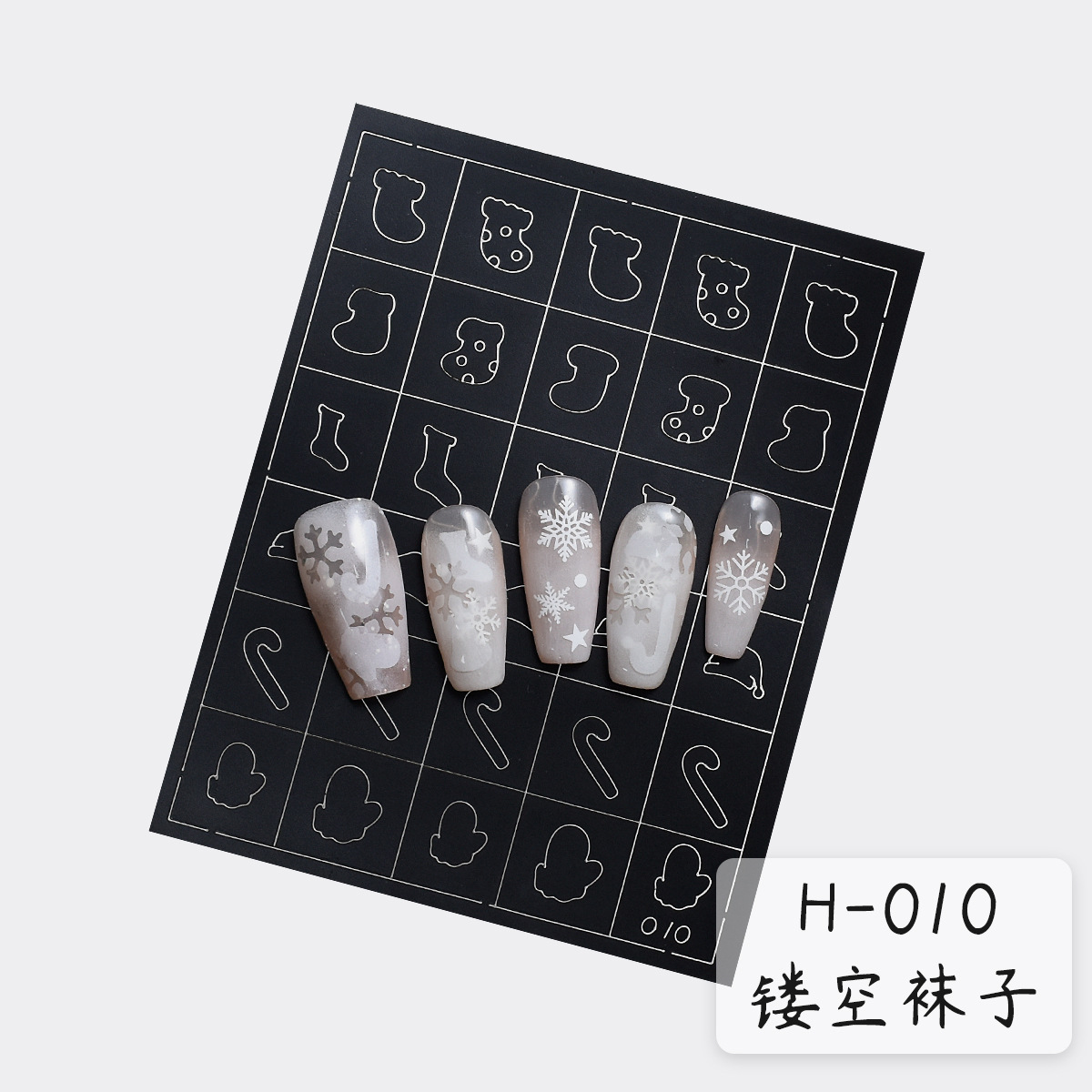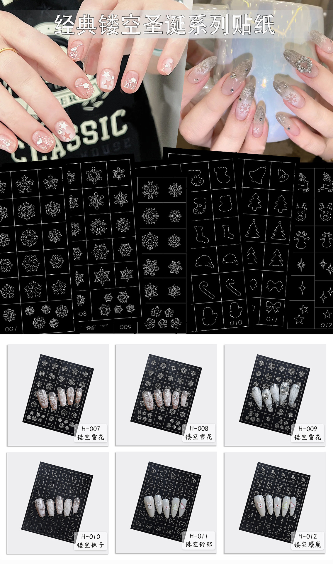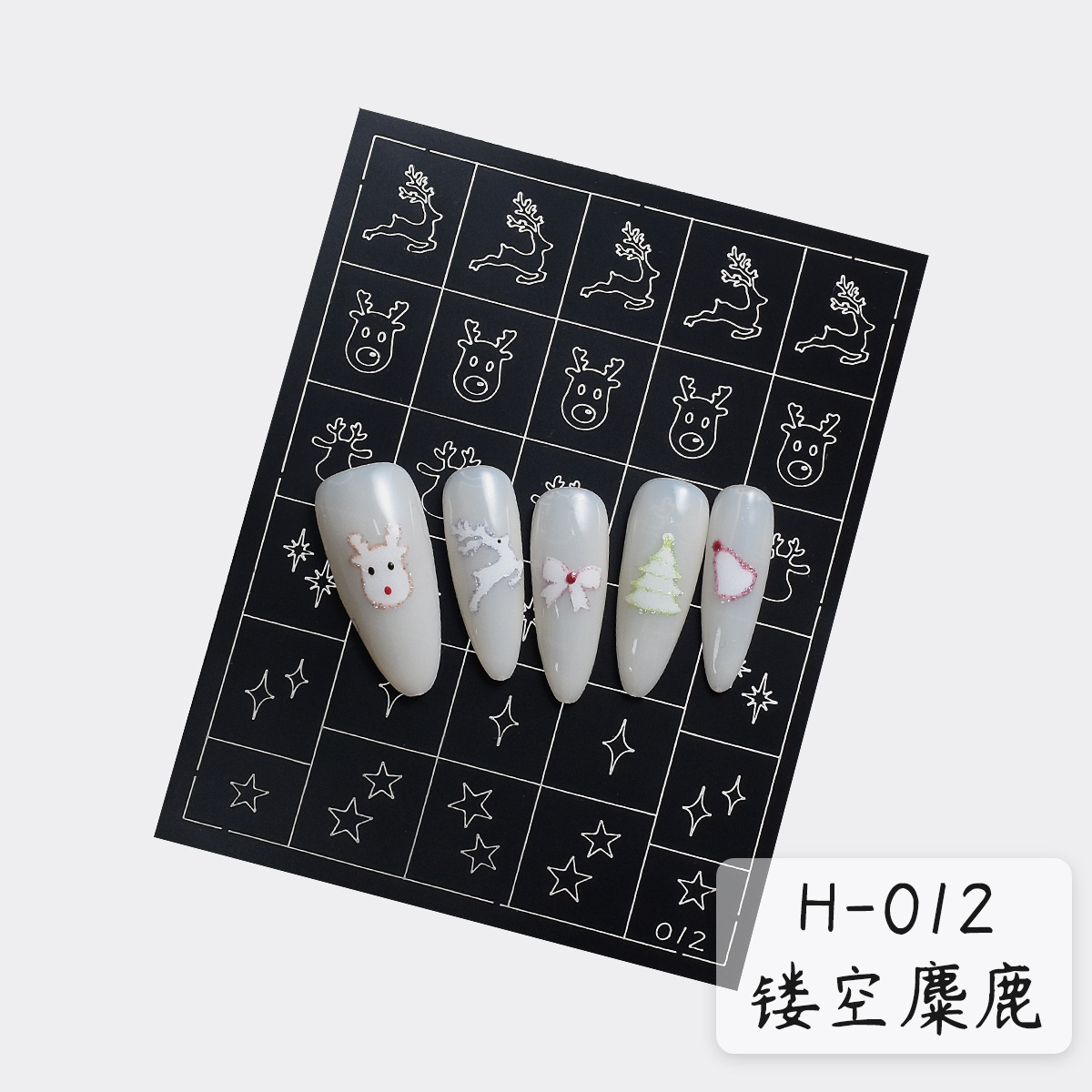 클래식 할로우 크리스마스 시리즈 네일 아트 스티커 스프레이 그린 눈송이 스타 맨 크리스마스 트리 엘크 보조 네일 스티커