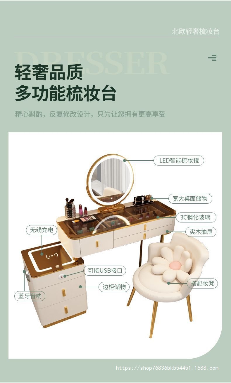 스마트 드레싱 테이블 무선 충전 라이트 럭셔리 노르딕 침실 드레싱 테이블 현대 간단한 다기능 솔리드 우드 메이크업 테이블스토어 가기