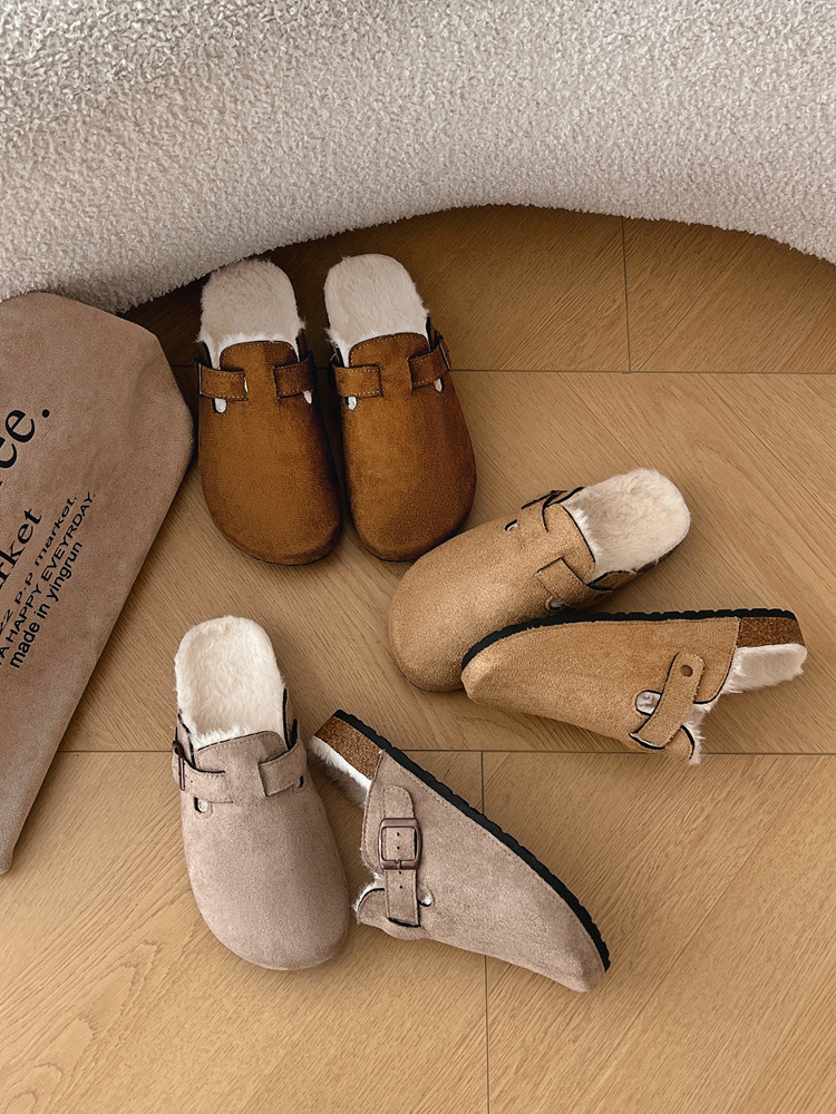마오마오 레이지 버켄 두꺼운 밑창 2025 가을 겨울 신상 슬립온 슬리퍼 플러스 벨벳 버켄 앞코가 막힌 반슬리퍼 여성용스토어 가기