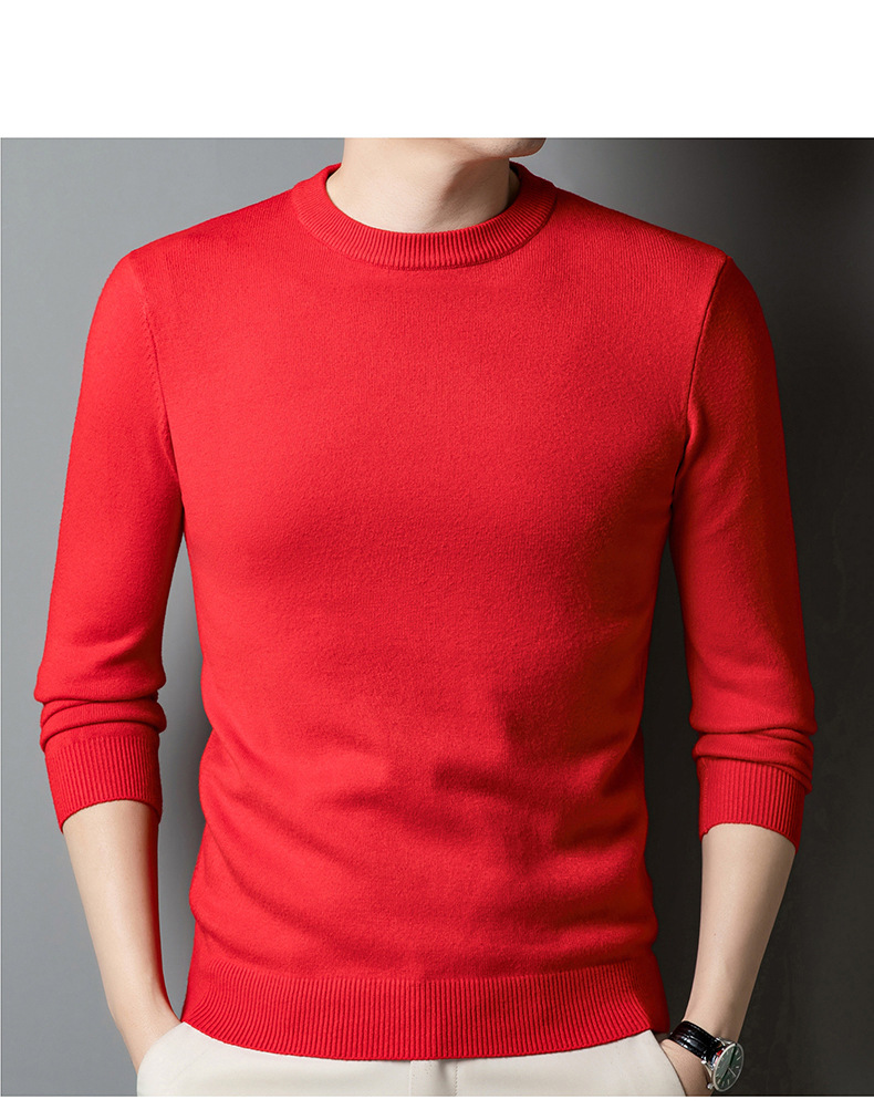남자 두꺼운 스웨터 가을과 겨울 새로운 라운드 넥 니트 스웨터 젊고 중년의 캐주얼 풀오버베이스 셔츠 긴팔 스웨터
