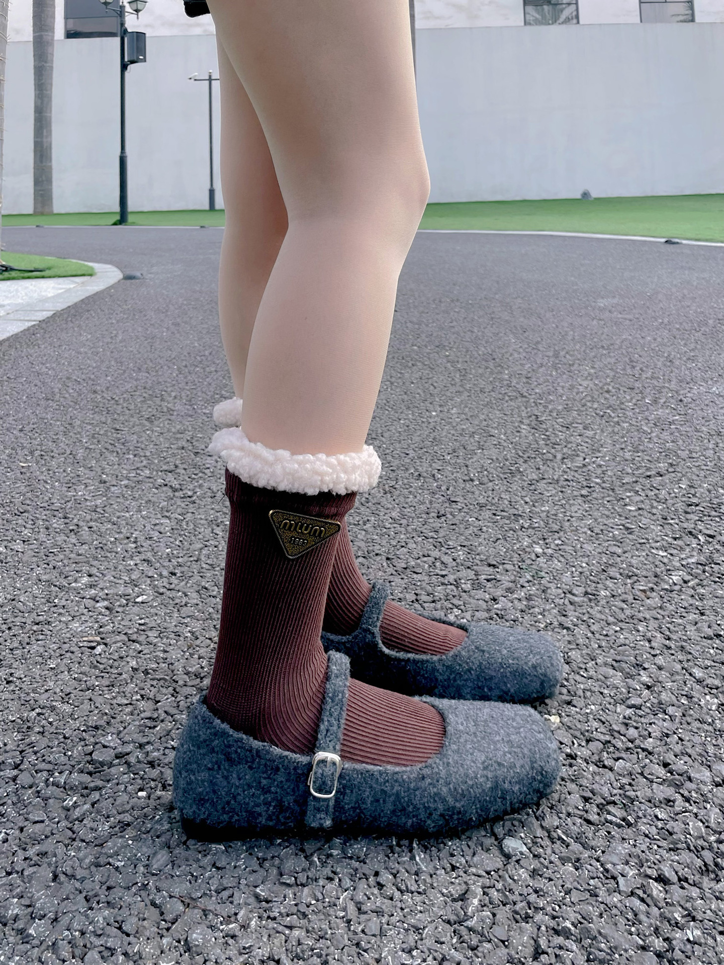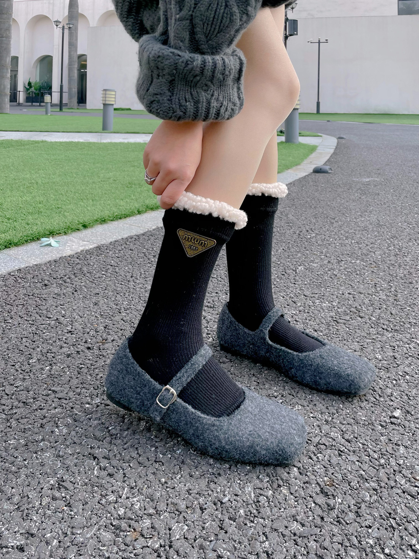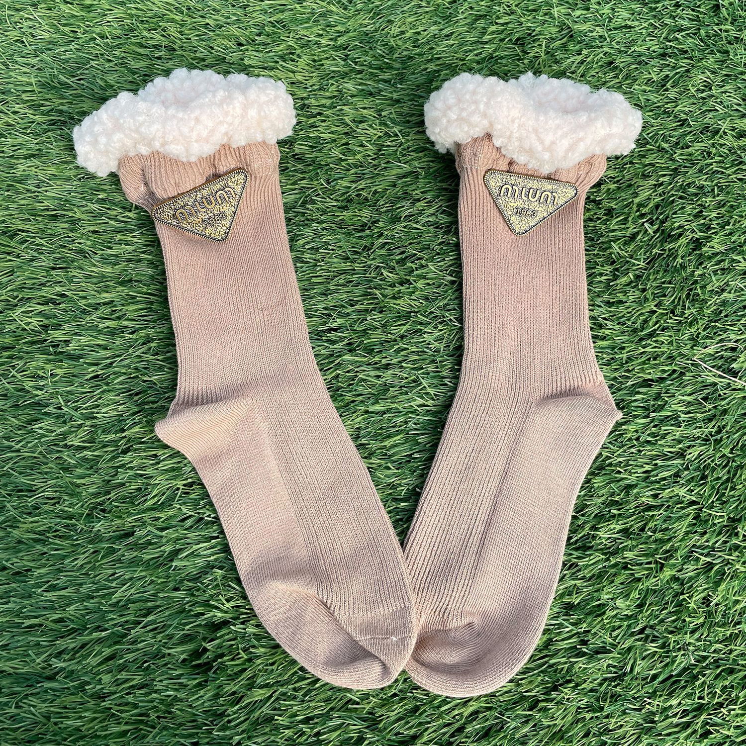 유럽 틈새 양모 가장자리 삼각형 금속 로고 디자이너 양말 양말 쌓아 양말 패션 패션쇼 미드 튜브 양말 가을과 겨울