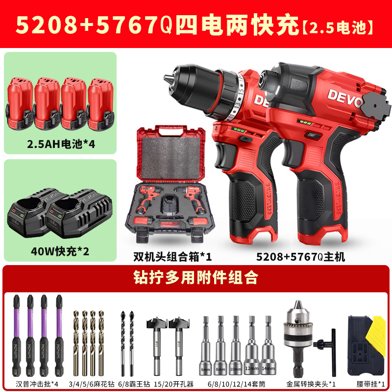 • 드릴과 트위스트 조합 5208+5767Q [배터리 4개, 고속충전 2개 2.5] 럭셔리 액세서리 + 콤비네이션 박스