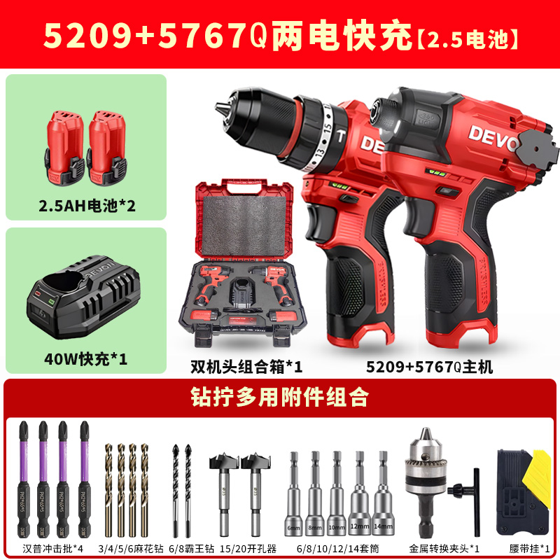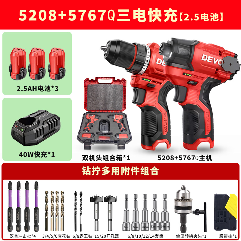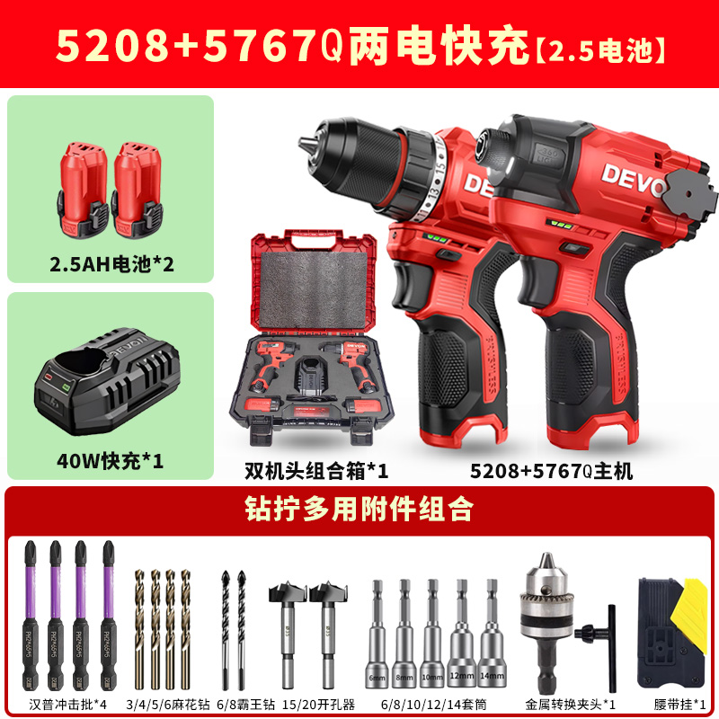 • 드릴과 트위스트 조합 5208+5767Q [배터리 2개 고속충전 2.5] 럭셔리 액세서리 + 콤비네이션 박스