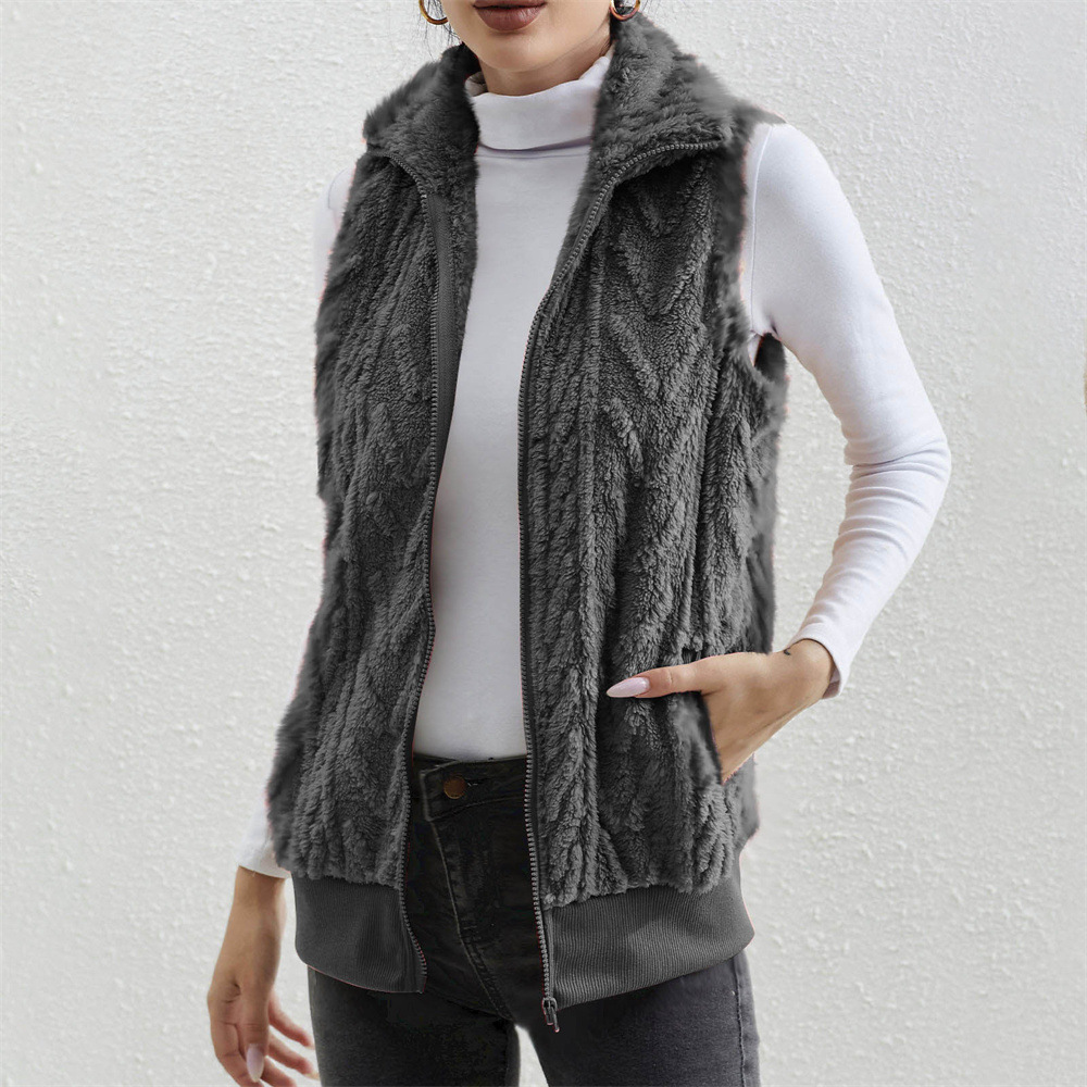 2024 유럽과 미국의 대외 무역 아마존은 가을과 겨울 자켓 새로운 두꺼운 자카드 양면 양털 소매 조끼스토어 가기