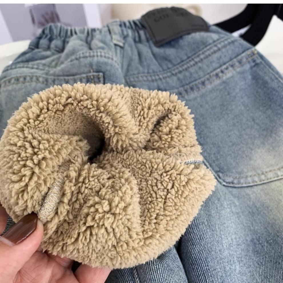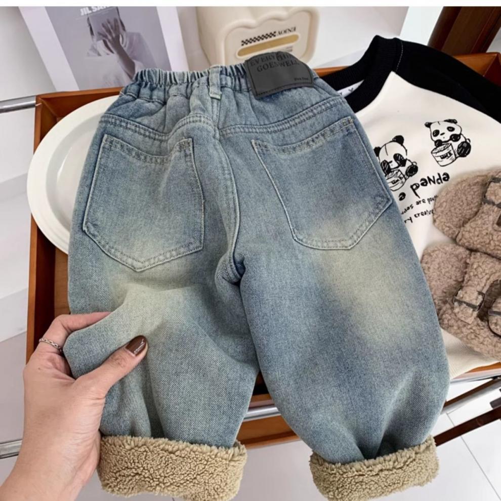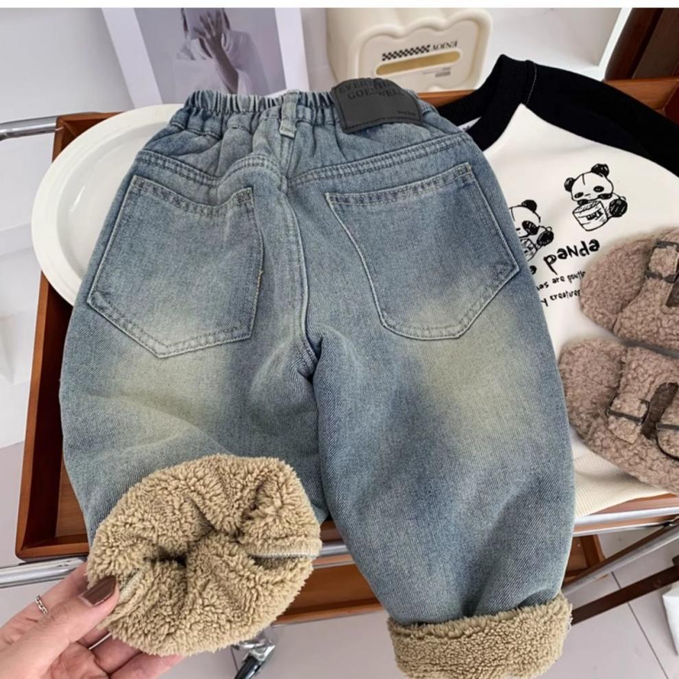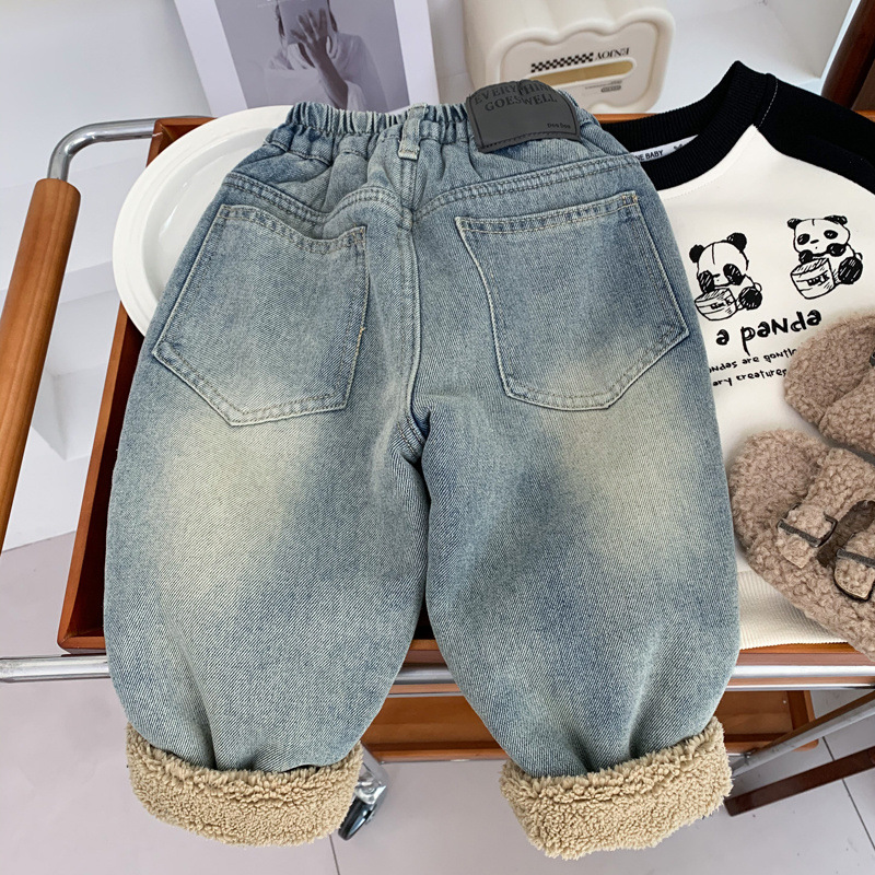 어린이 기모 청바지 겨울 새로운 두꺼운 따뜻한 양고기 벨벳 바지 소년 소녀를위한 노스 바지스토어 가기