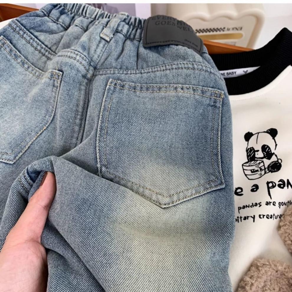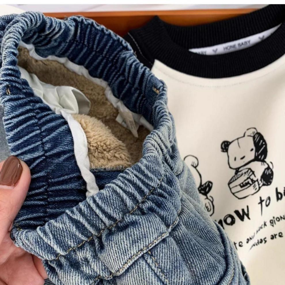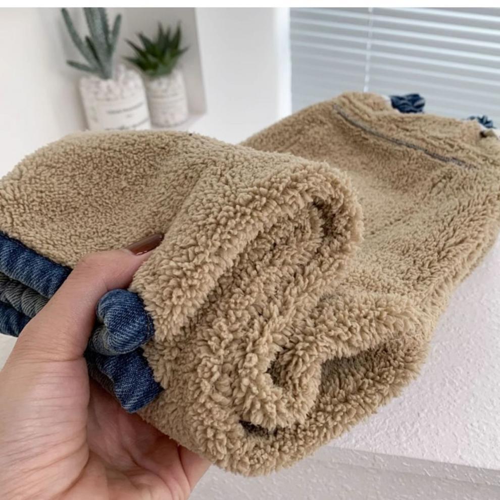 어린이 기모 청바지 겨울 새로운 두꺼운 따뜻한 양고기 벨벳 바지 소년 소녀를위한 노스 바지스토어 가기
