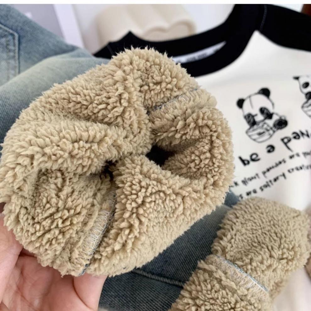 어린이 기모 청바지 겨울 새로운 두꺼운 따뜻한 양고기 벨벳 바지 소년 소녀를위한 노스 바지
