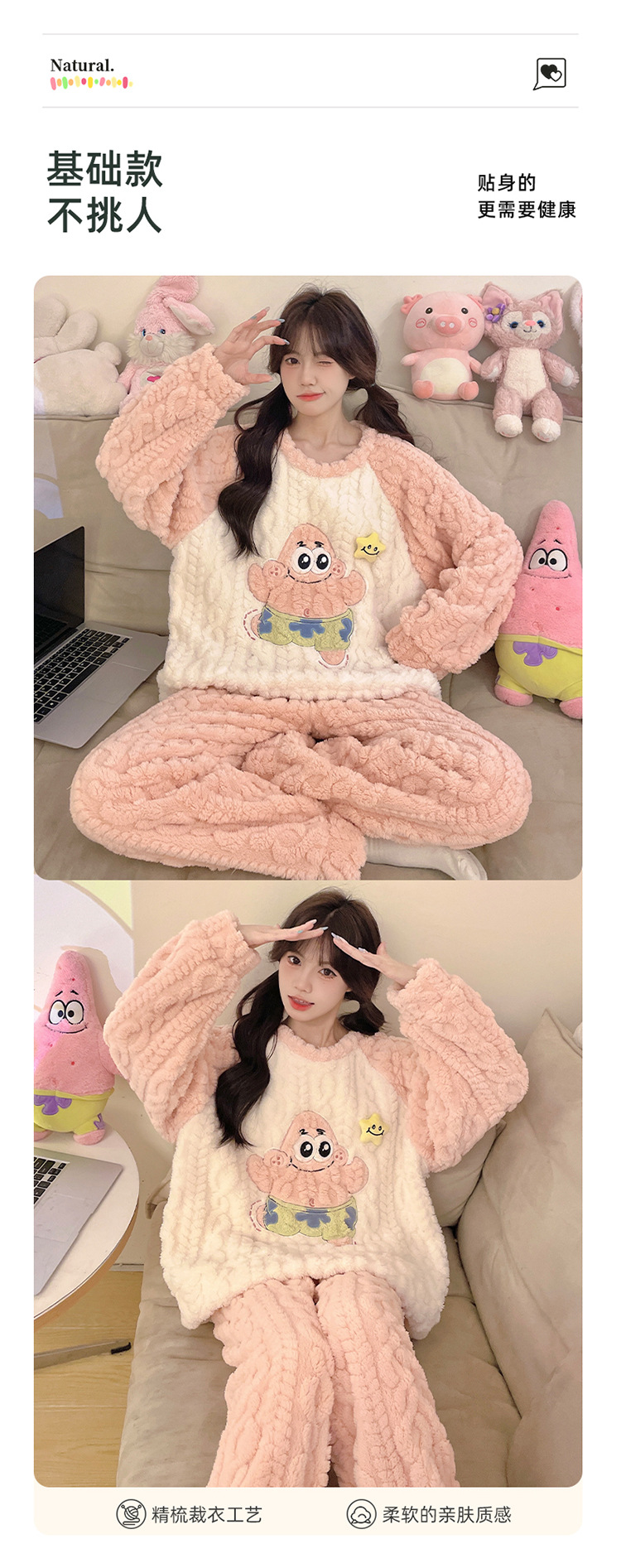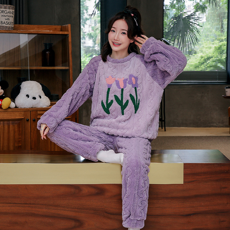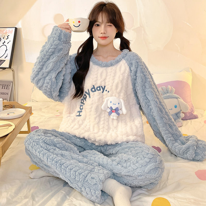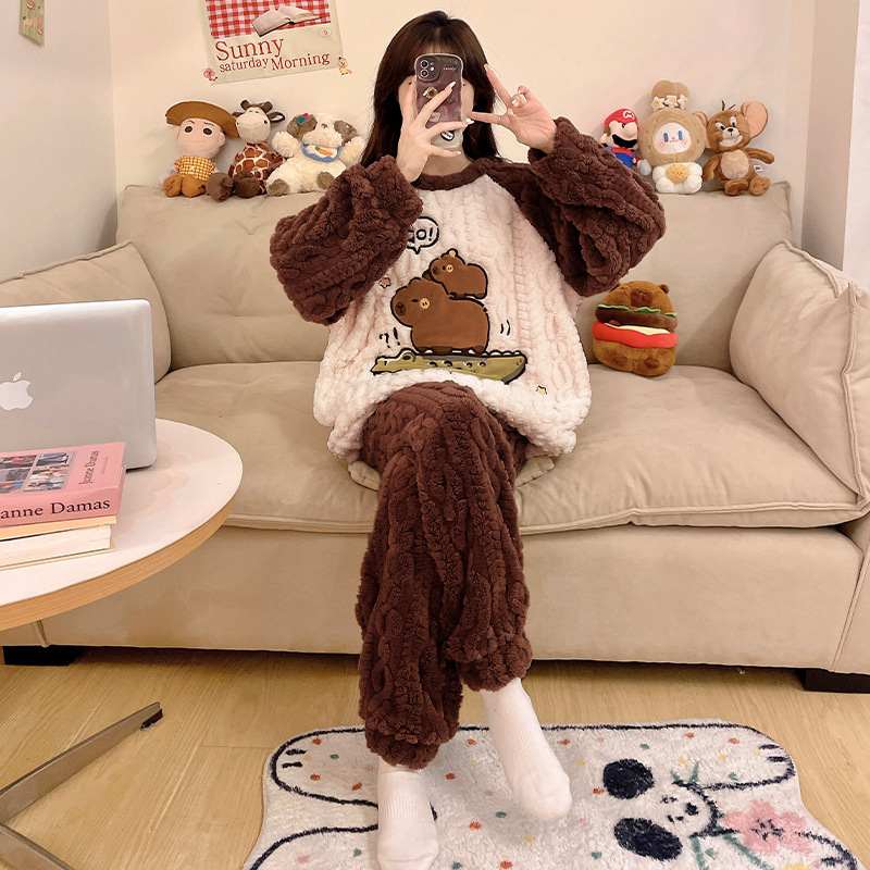 어린이 플란넬 겨울 잠옷 어린 소녀 가을과 겨울 기모 봉제 중학생 겨울 산조각 소녀 홈 옷스토어 가기