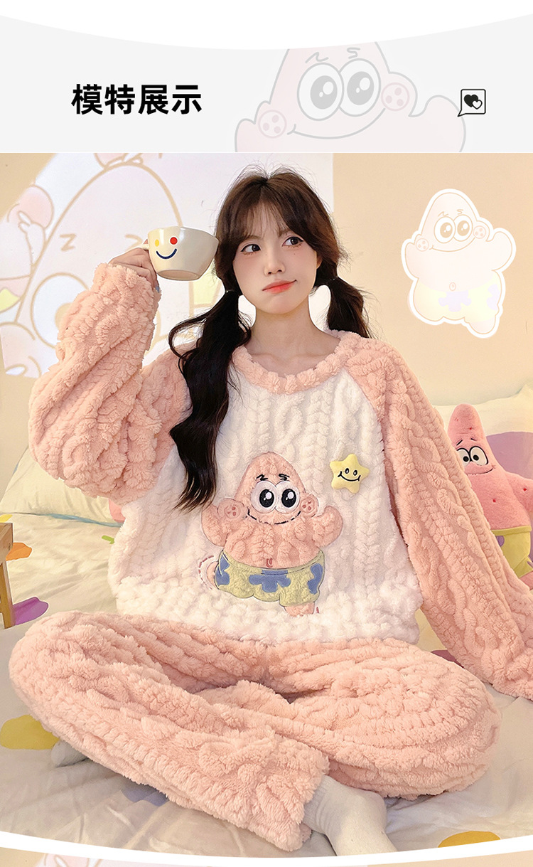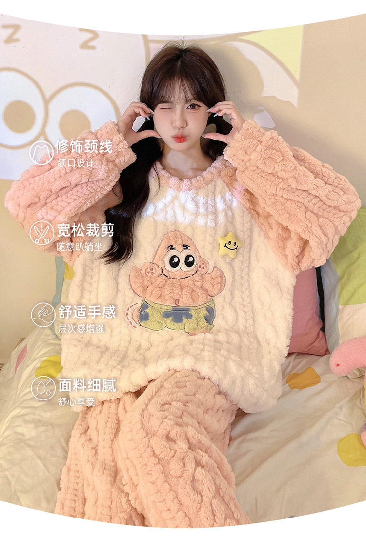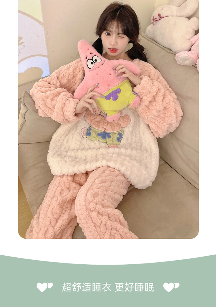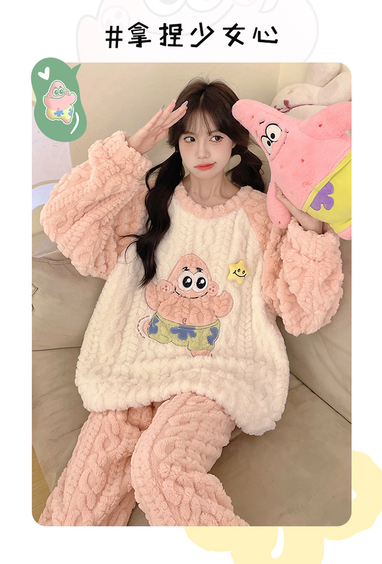 어린이 플란넬 겨울 잠옷 어린 소녀 가을과 겨울 기모 봉제 중학생 겨울 산조각 소녀 홈 옷스토어 가기