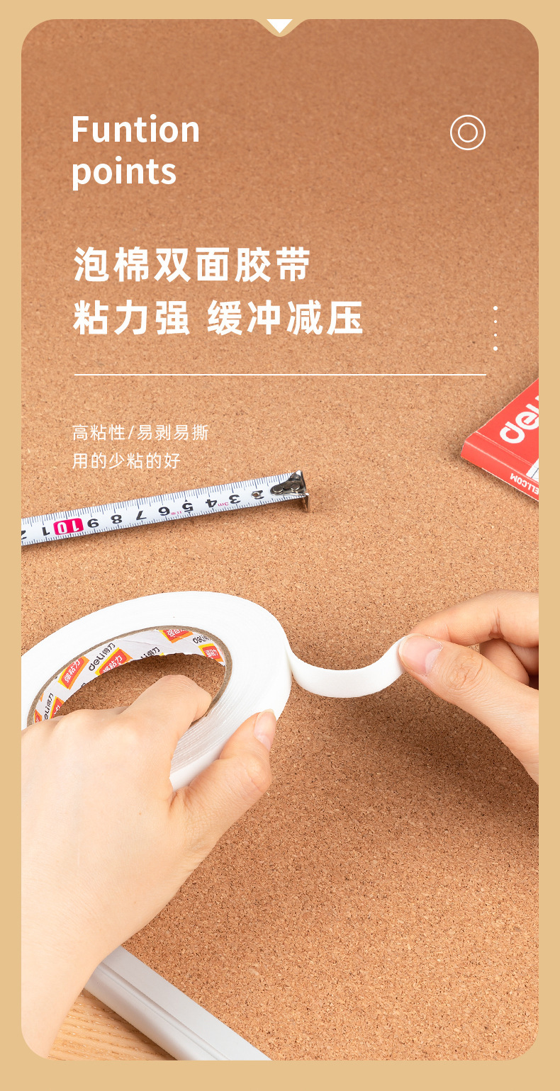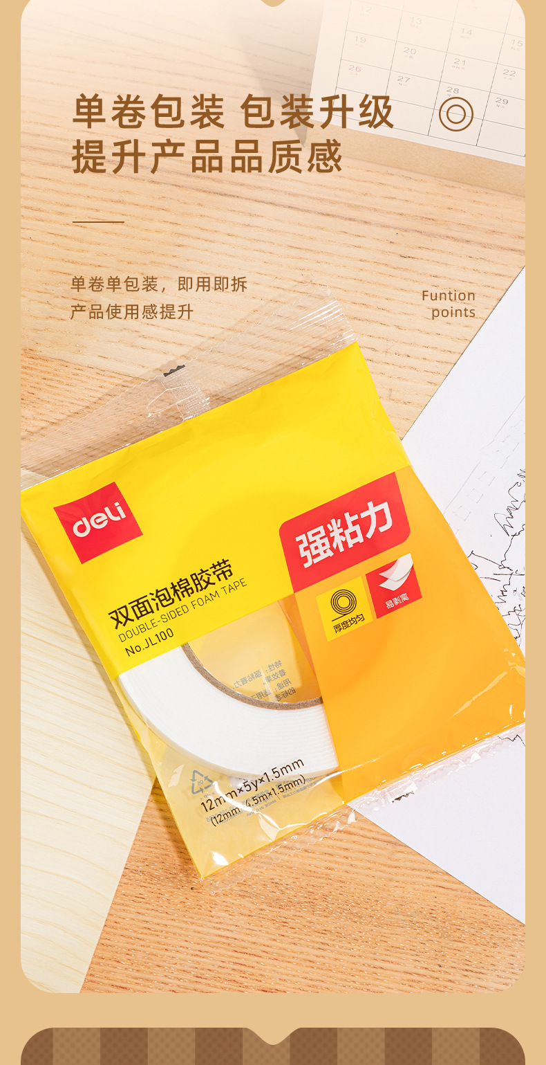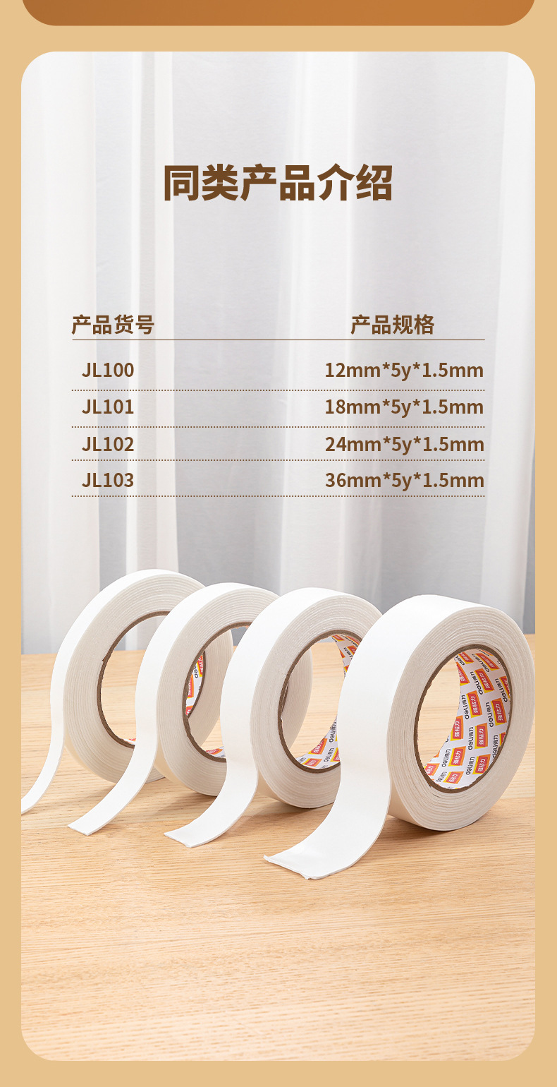 델리 JL100/JL101/JL102/JL103 양면 폼 테이프 12/18/24/36mm 와이드 테이프스토어 가기