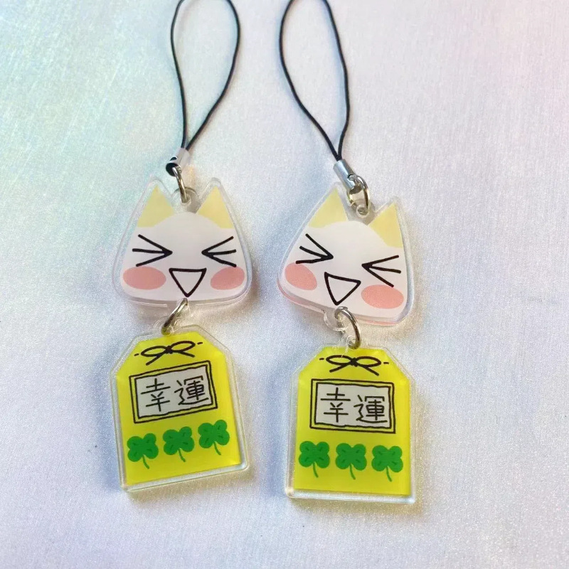 고대 귀여운 도로 고양이 왕실 가드 작은 펜던트 행운의 손 원장 펜던트 휴대 전화 체인 가벼운 소나무 곰 네 잎 클로버 교수형 체인