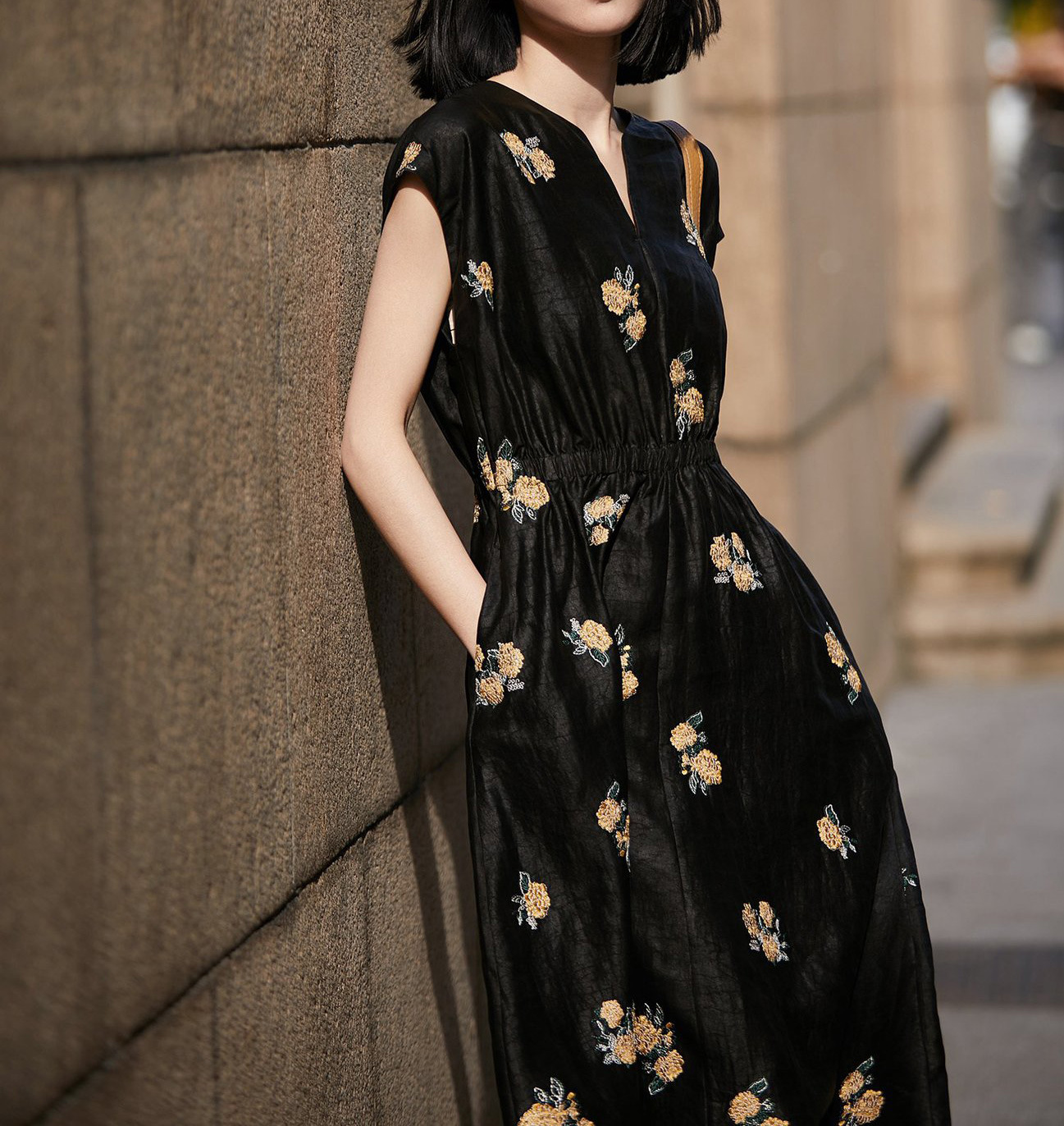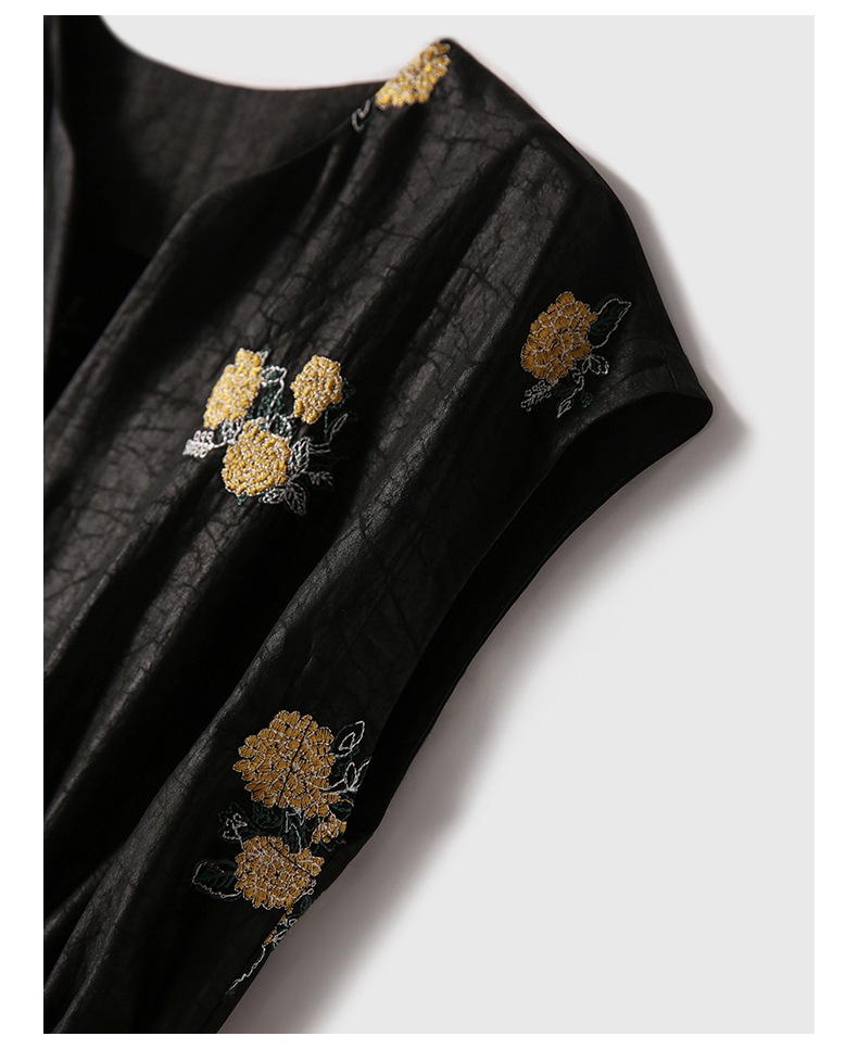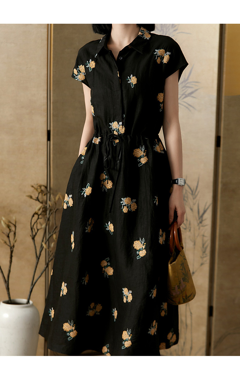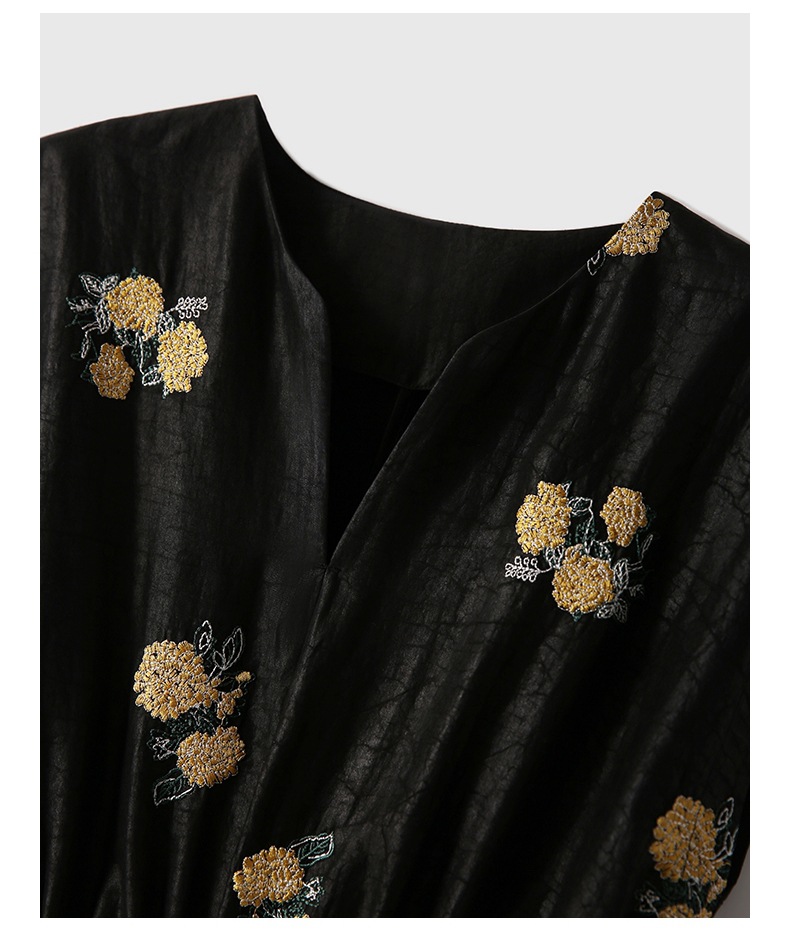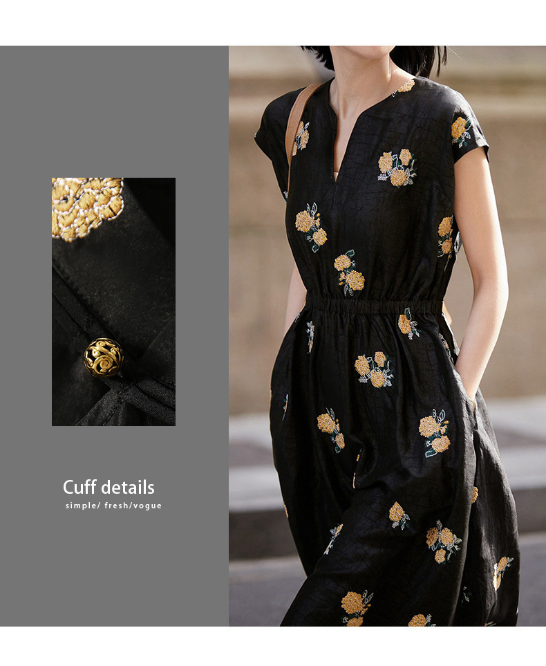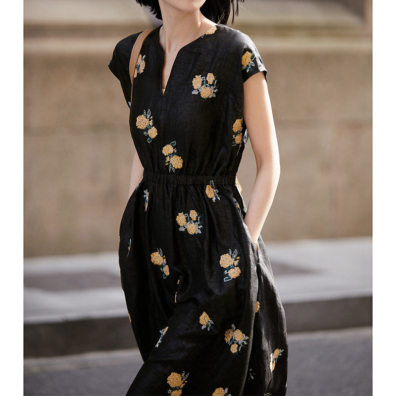 샹윤 원사 자수 실크 원피스 멀 베리 실크 롱 원피스 하이 엔드 센스 스몰 블랙 원피스 A 라인 원피스 여성 여름