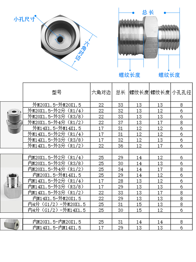 • 내부 M14X1.5-외부 2점(ZG1/4)