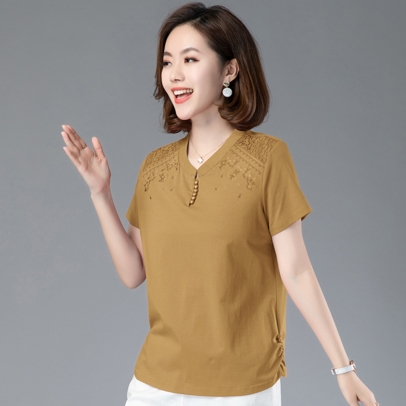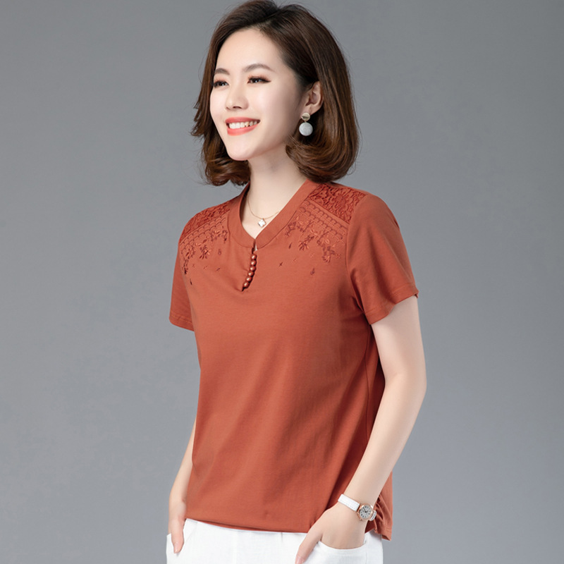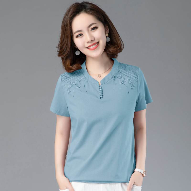 2024夏装新款妈妈洋气短款时尚百搭棉绣花T恤女夏天体恤衫上衣스토어 가기