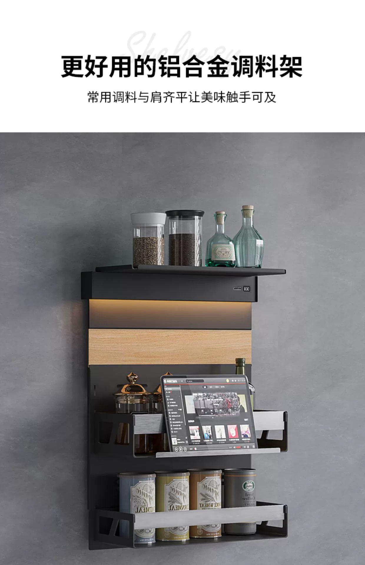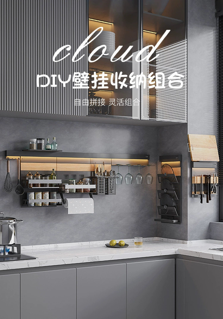새로운 주방 스토리지 랙 램프 다기능 냄비 커버 랙 조미료 나이프 랙 벽 교수형 가정용 비 천공 스토리지 랙스토어 가기