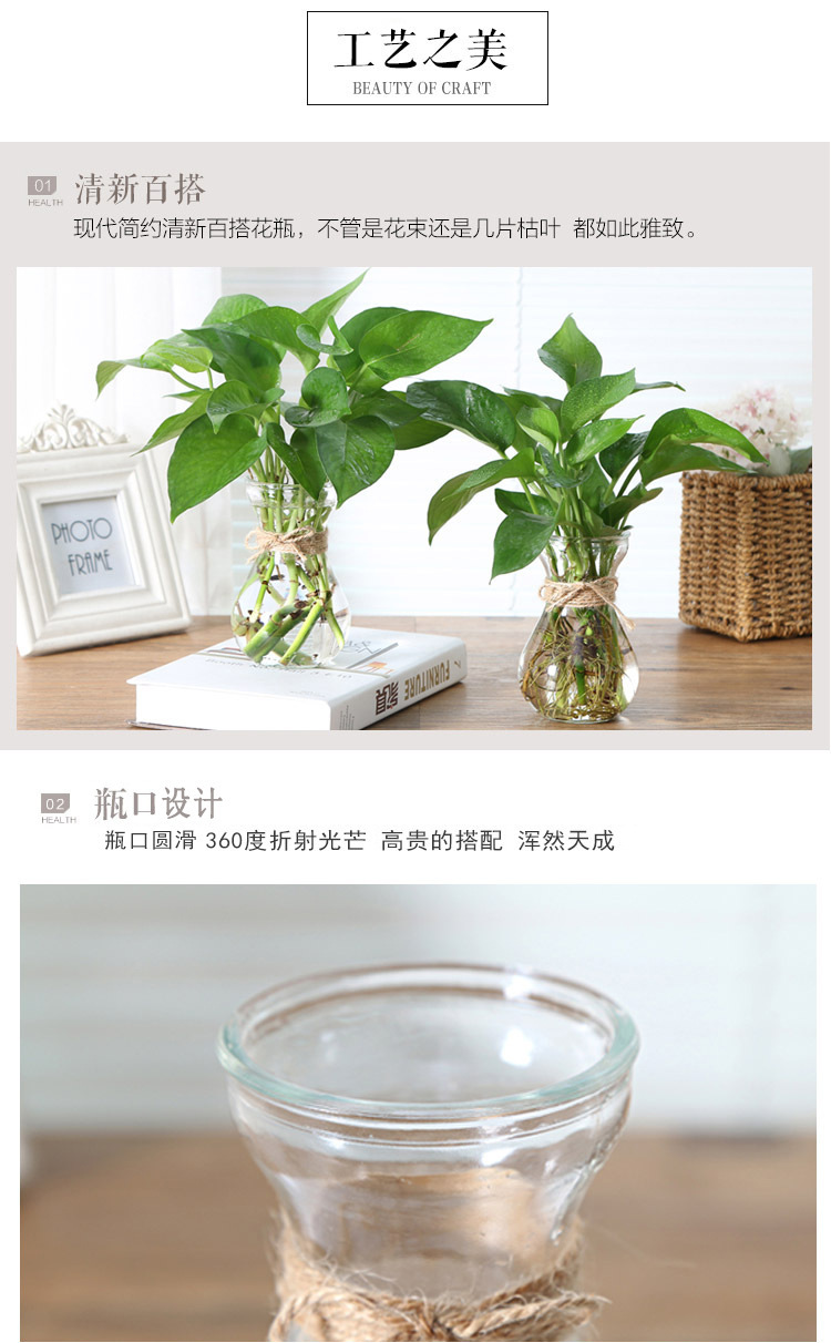 히아신스 유리 꽃병 투명 수경 녹색 장미 식물 거실 꽃꽂이 창조적 인 화분기구 가정용 작은 장식품스토어 가기