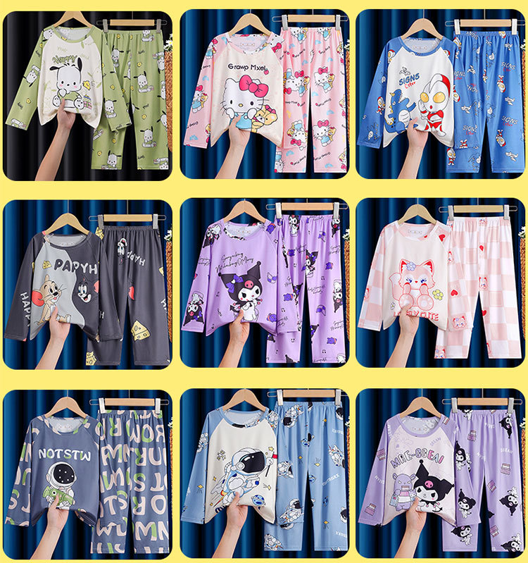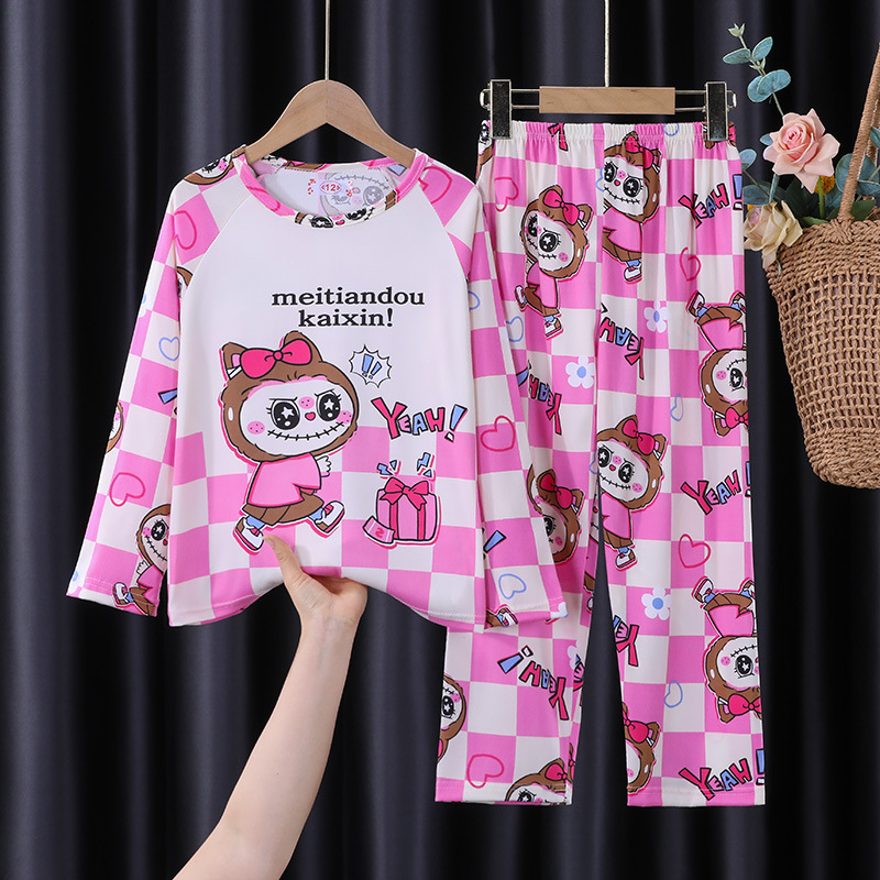 봄 가을 새로운 어린이 만화 홈 의류 세트 소녀 어린이 느슨한 귀여운 잠옷 소년 한국 스타일