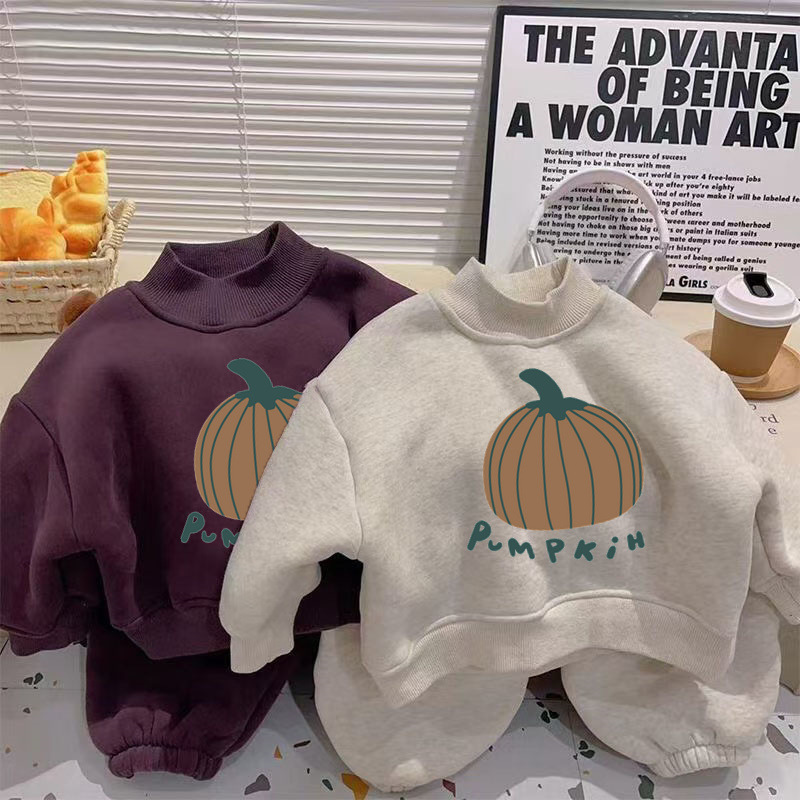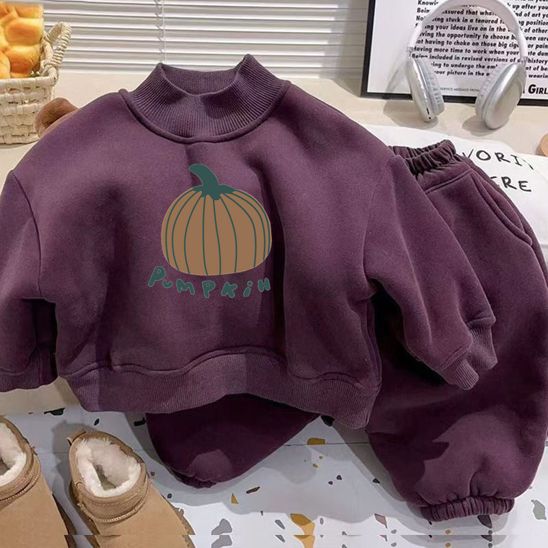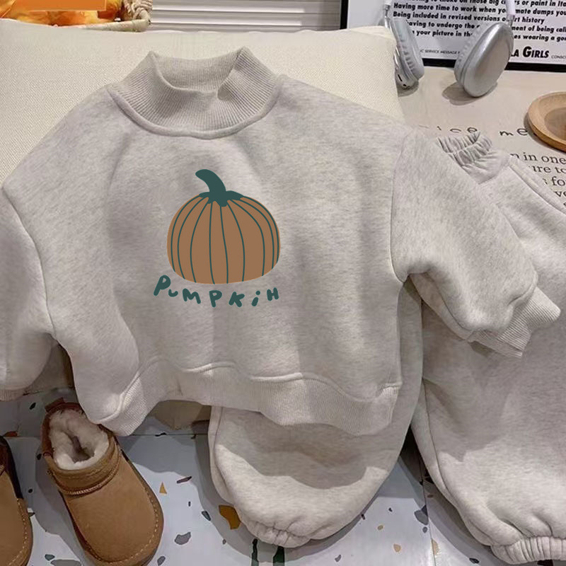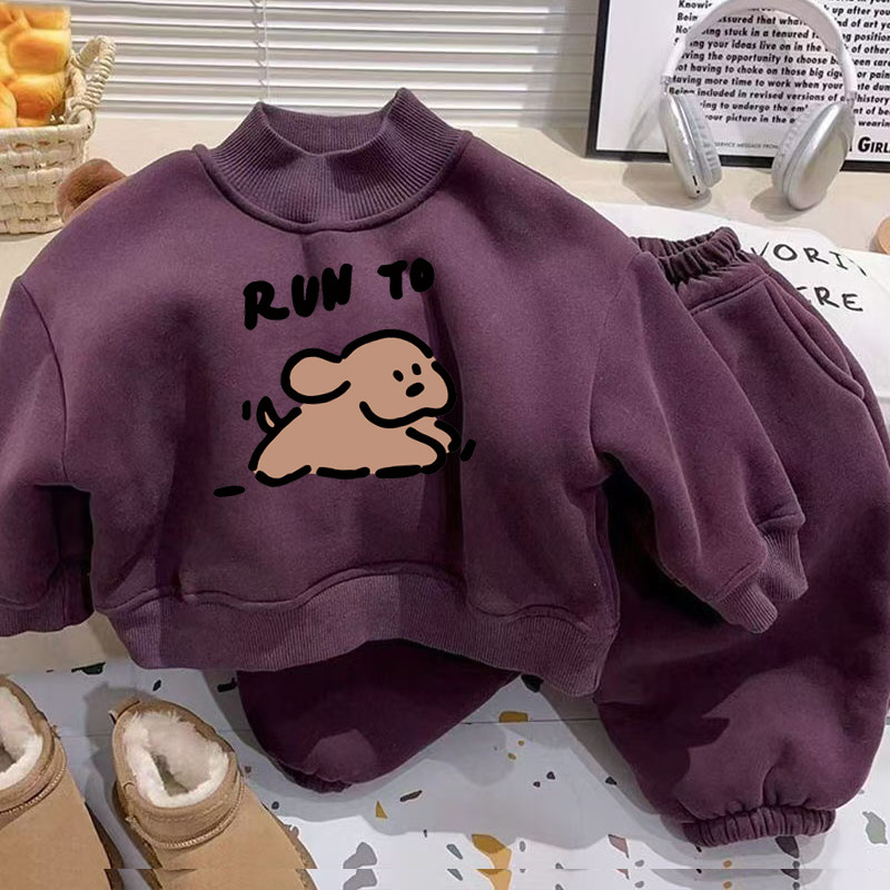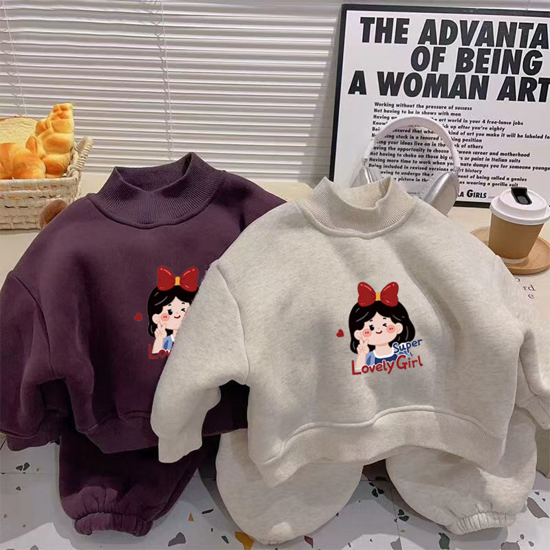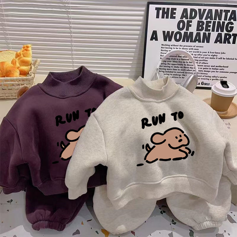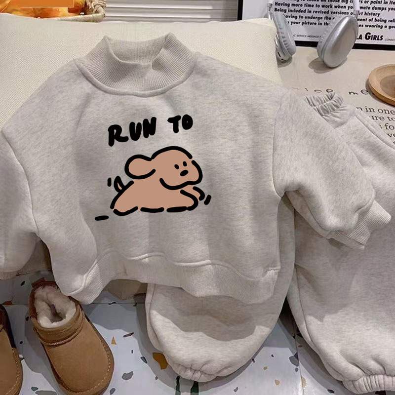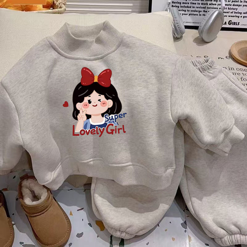 어린이 소녀 겨울 스웨트 셔츠 기모 두꺼운 세트 새로운 한국식 아기 귀여운 만화 캐주얼 투피스 세트스토어 가기