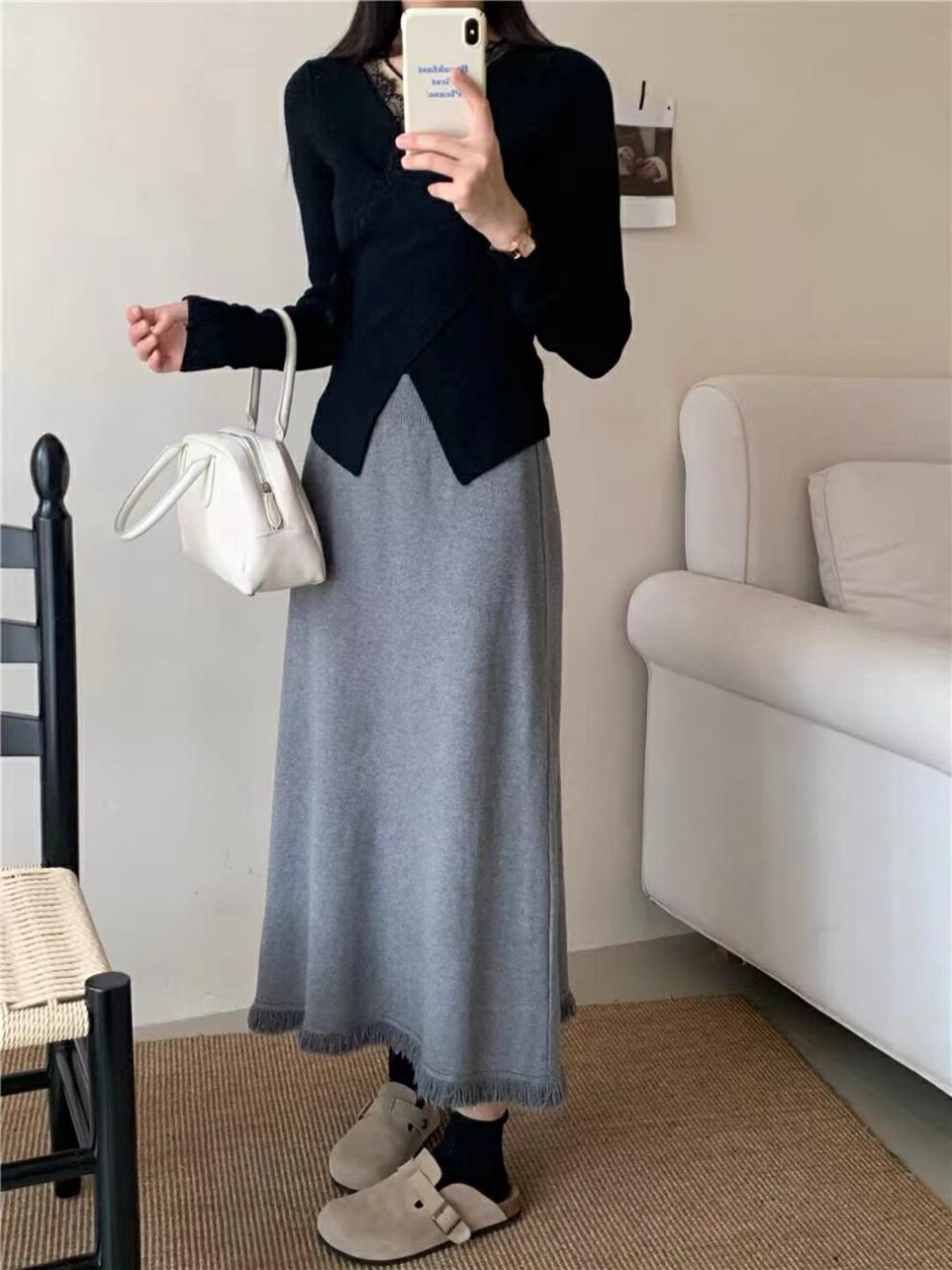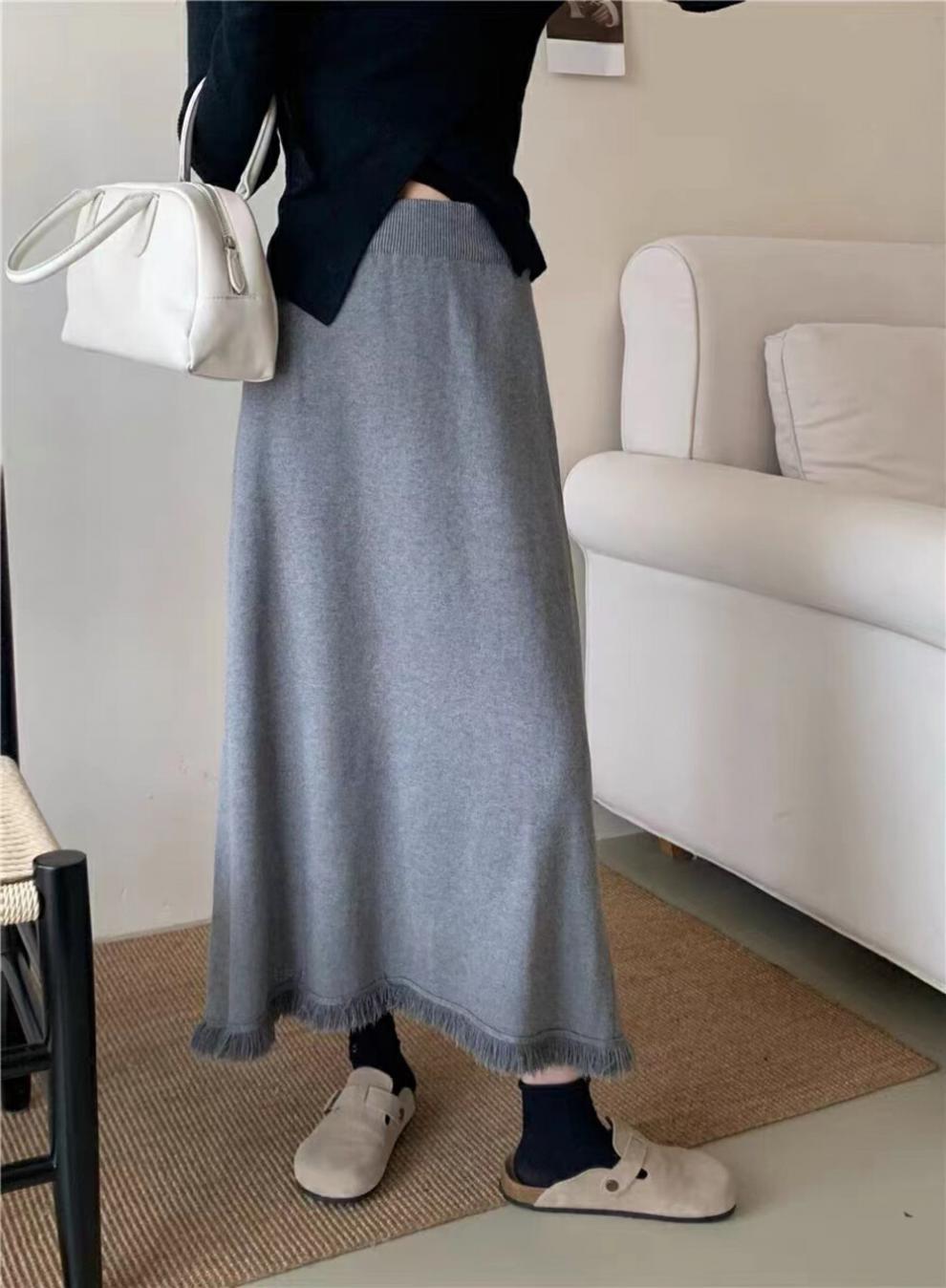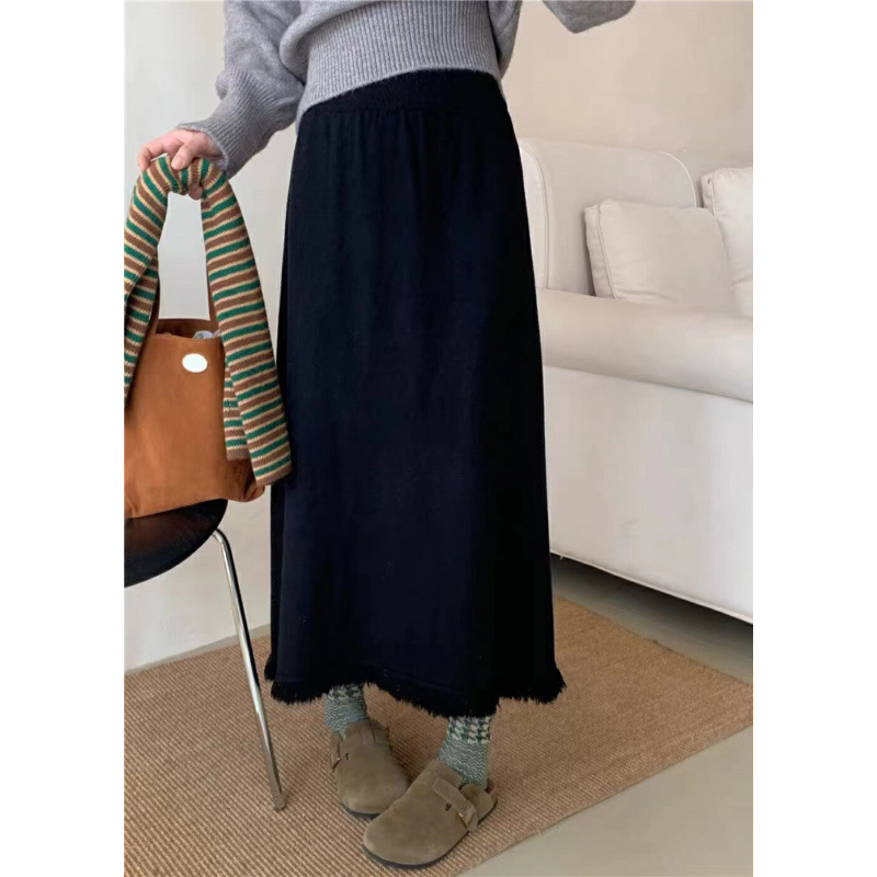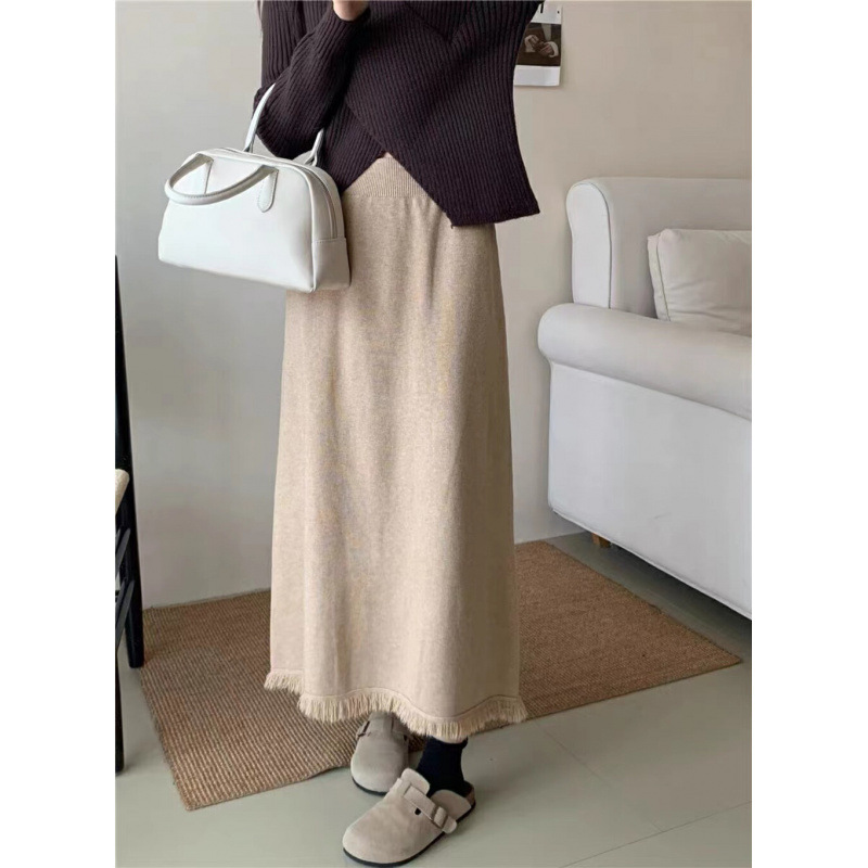 두꺼운 미디 헝겊, 니트 스커트 여성용 2024 겨울 새 스타일 디자인 센스 스트레이트 튜브 트렌디 스커트스토어 가기